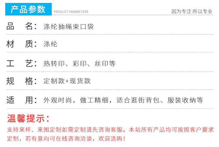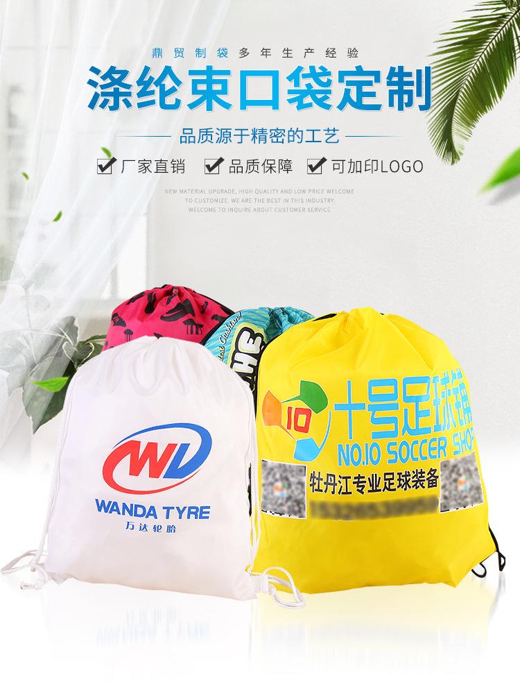 Bolsa de Cordón de Nailon para Almacenamiento de Bolsillo con Cordón de Poliéster 210D para Impresión de Mochila de Bolsillo