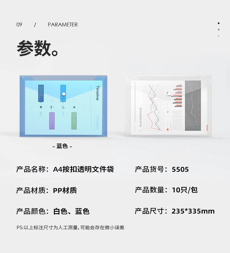 Bolsa de archivo Deli transparente blanca 5505, bolsa de información, bolsa de archivo A4, bolsa de plástico con botón para estudiantes, bolsa de papel de prueba