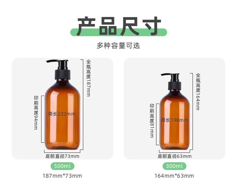 Frasco Spot de 500 ml de Plástico para Gel de Ducha Champú Botella Vacía 300 ml Sub-Botella para Loción Cosmética Botella para Hidrosol