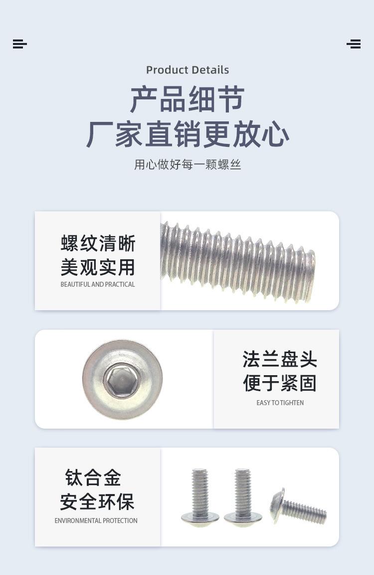 Aleación de titanio TA2 cabeza redonda con almohadilla tornillo hexagonal cabeza plana semicircular autoamortiguada M6 * 10/20/25/3