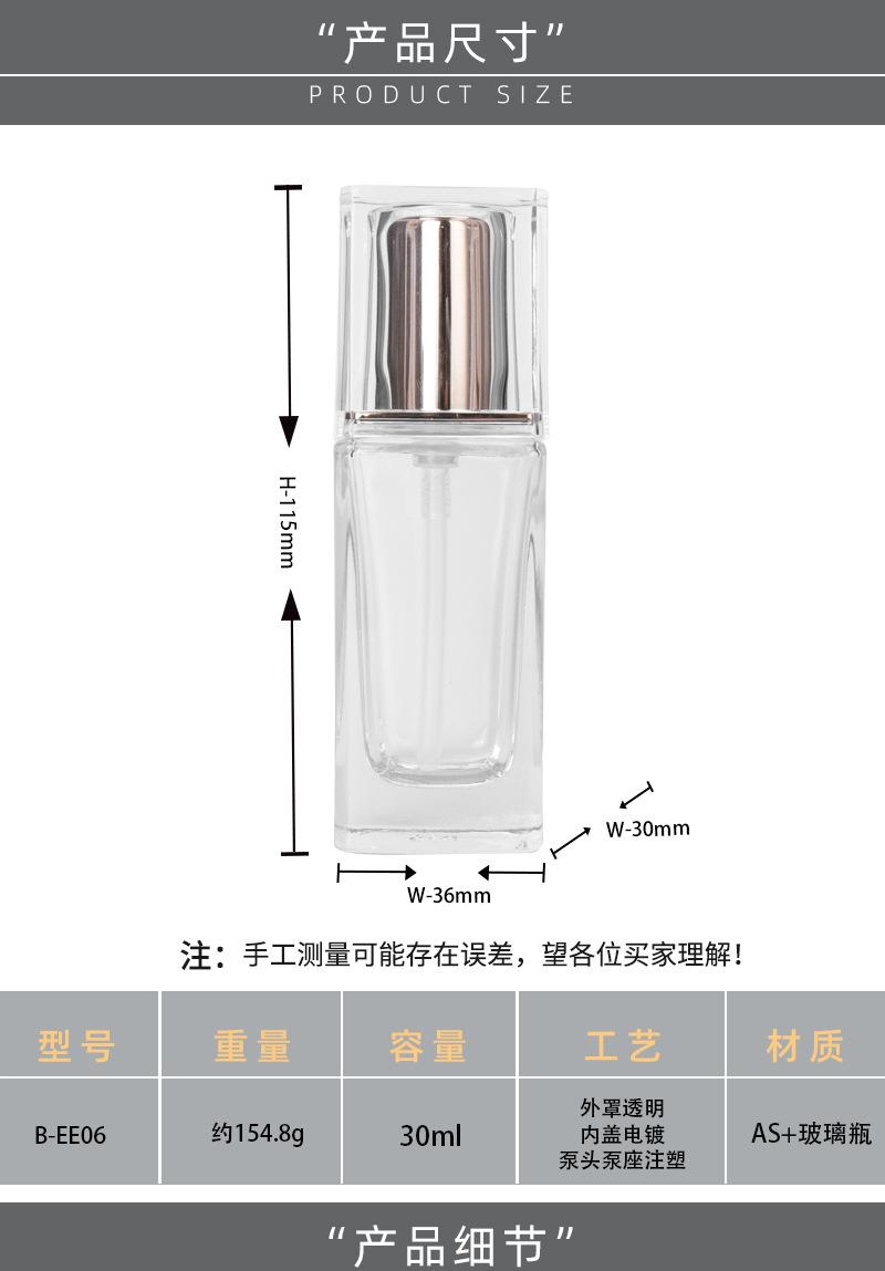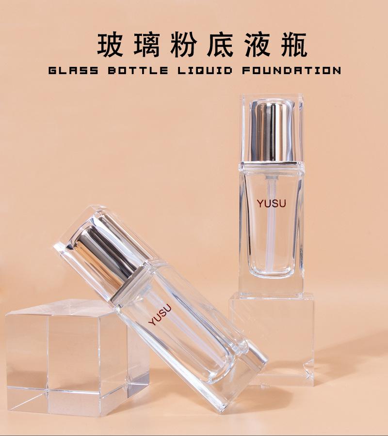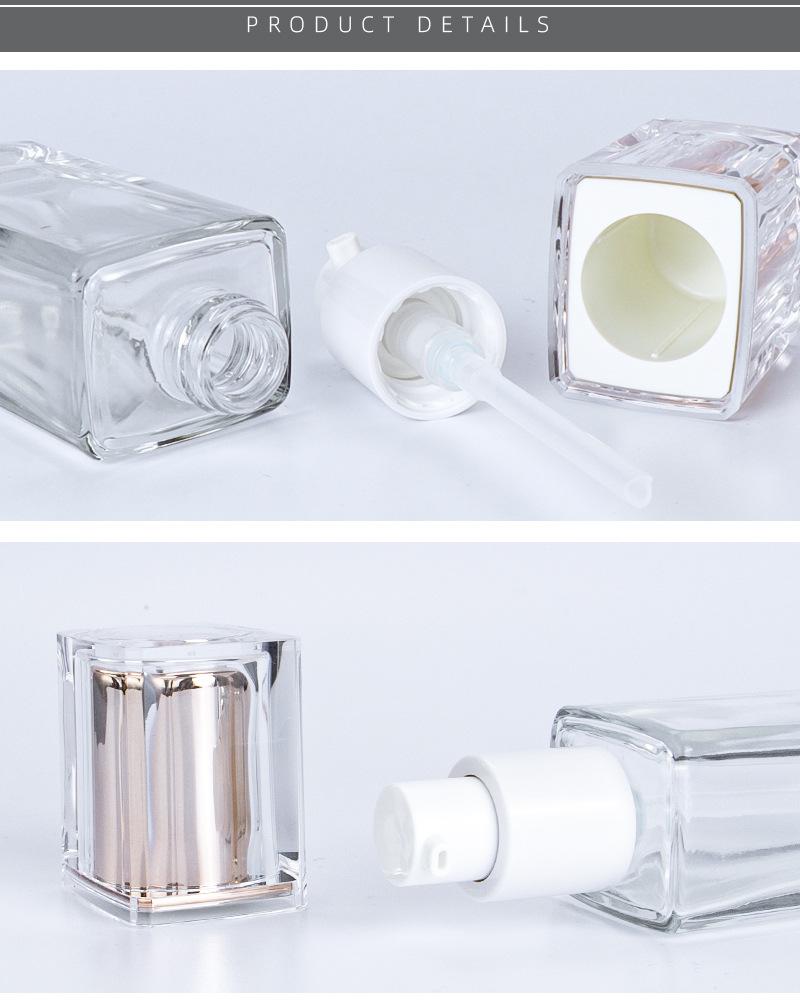 Compra Botella de base acrílica, botella de vidrio para líquidos, botella vacía para cosméticos, botellas cuadradas portátiles para base líquida. al por mayor en Joom.pro