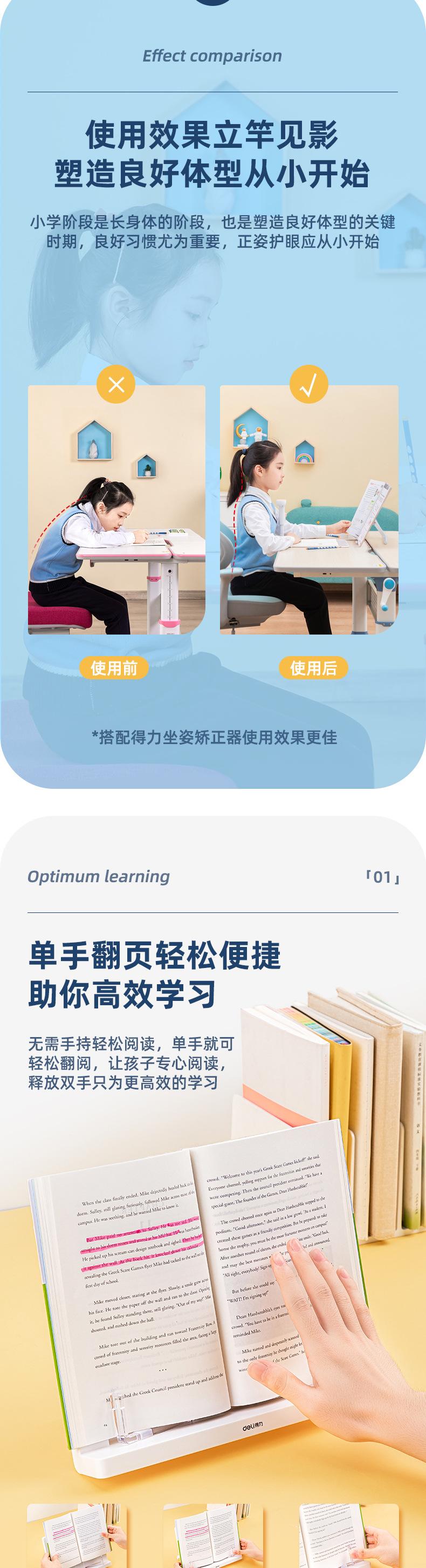Deli 70530 Atril de Lectura Artefacto Corrector de Postura al Sentarse Escritorio Estantería de Lectura para Niños Soporte de Lectura Estantería para Ver