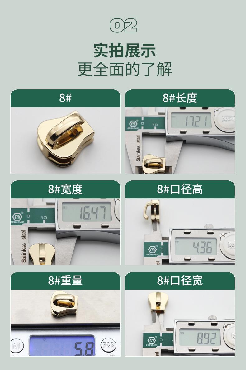 Cremallera de resina n.° 8, cremallera metálica sin bloqueo, cremallera dorada y plateada clara, cremallera para equipaje y tienda de campaña.