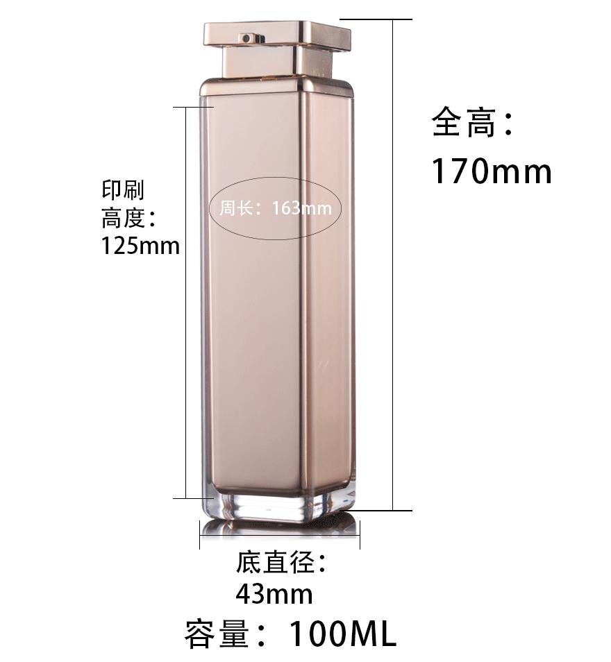 Botella acrílica de hoja superior cuadrada 50g botella de crema 35ml55ml100ml botella de loción de esencia botella cosmética