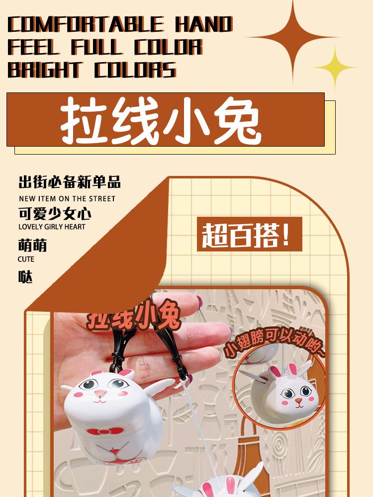 Llavero creativo con forma de conejo de alambre, bonito y descompresor, pequeño juguete, venta al por mayor, llavero de dibujos animados, colgante para bolso de escuela, regalo