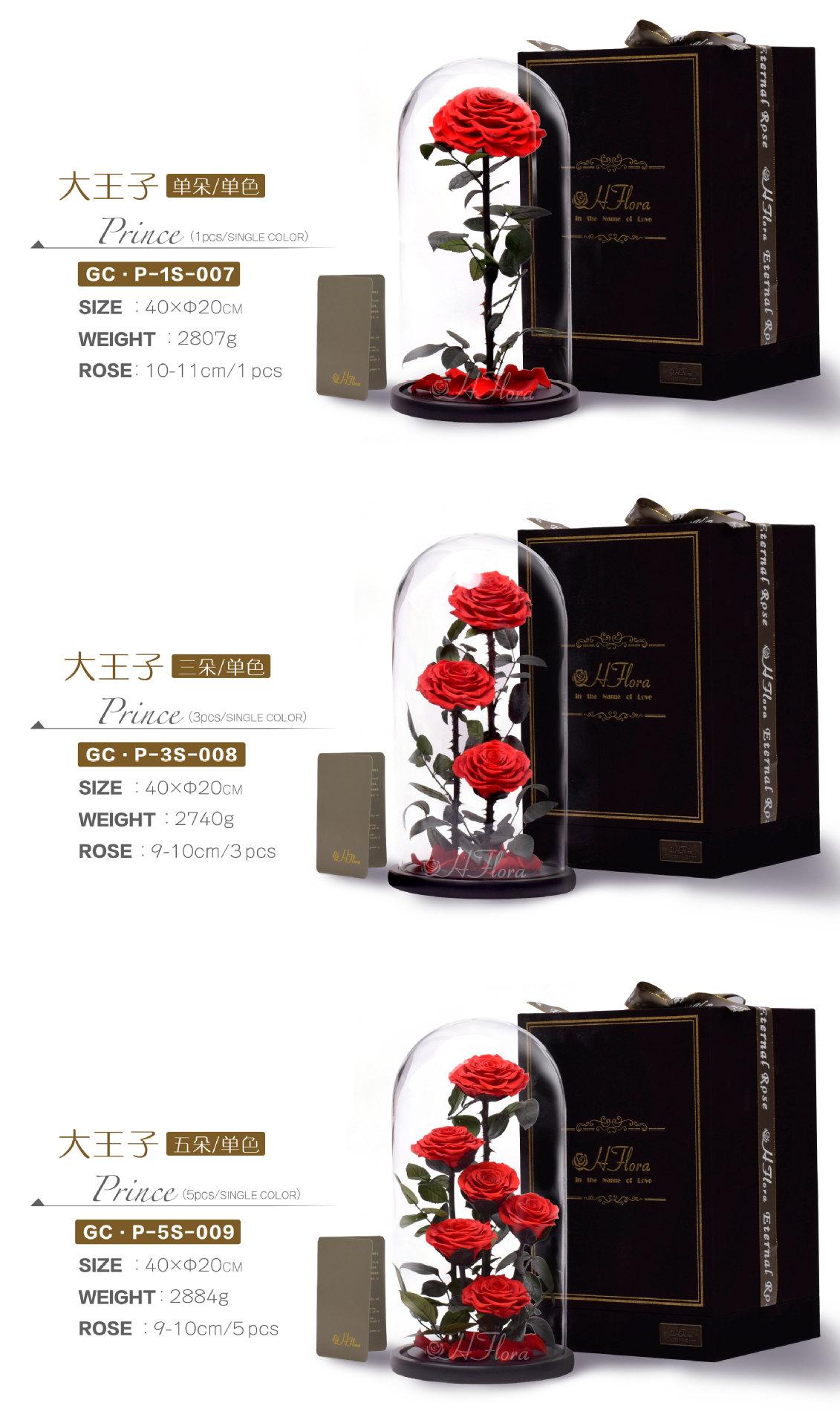 Flor Eterna Cubierta de Cristal Rosa Día del Maestro Cumpleaños Día de San Valentín Regalo Boda de Alta Gama Venta al por Mayor Transfronteriza Caja de Regalo