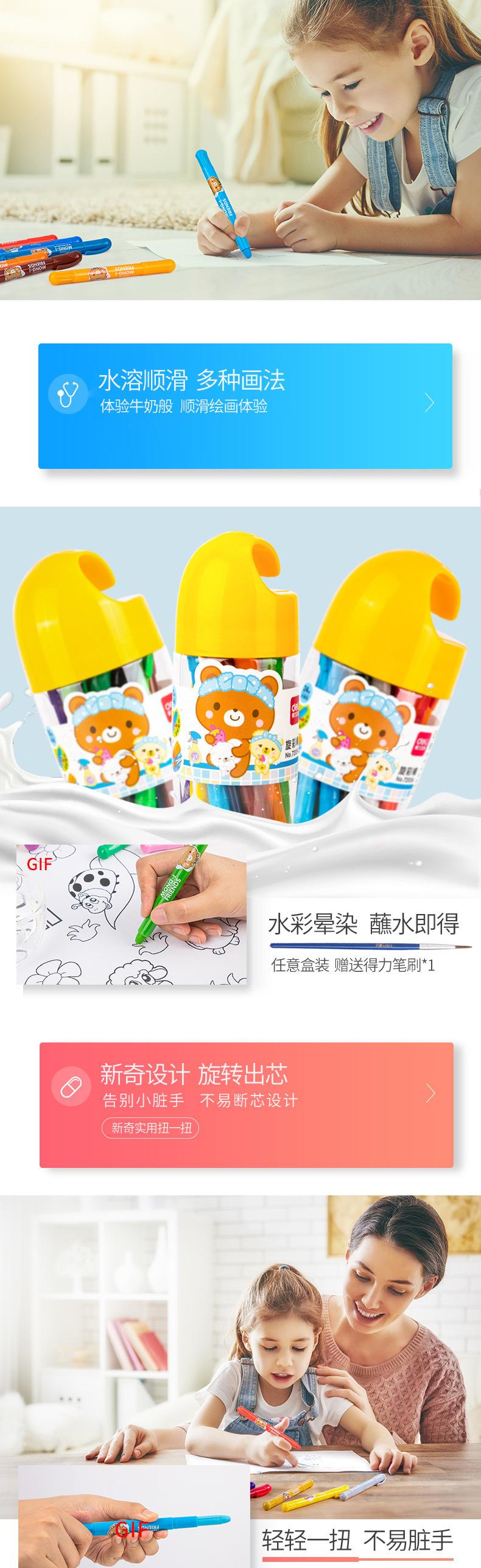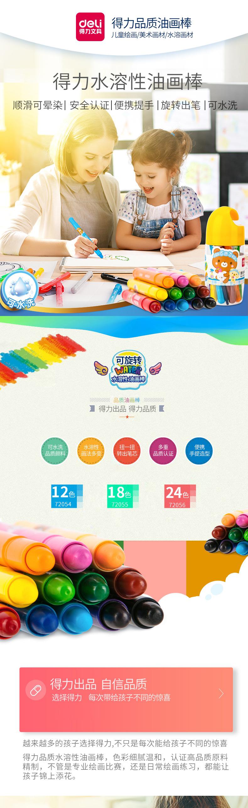 Deli 72054 - Barra de pintura al óleo (12 colores), pincel para pintar grafiti para niños, crayón, barra de pintura al óleo giratoria