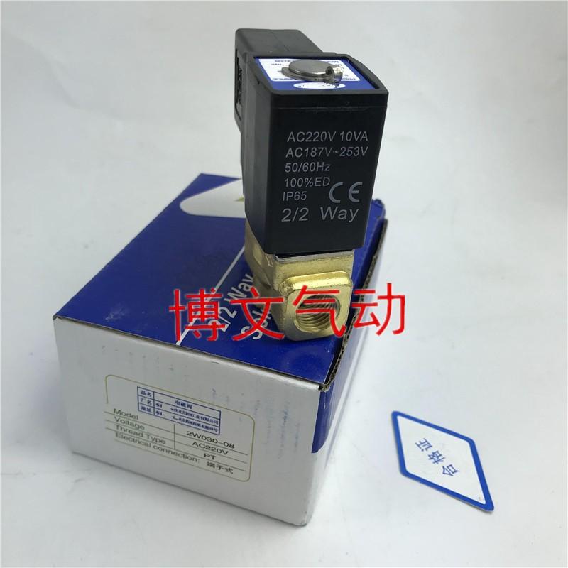 Válvula solenoide 2W030-08, CA 220 V, CC 24 V, de dos vías, normalmente cerrada, con cuerpo de cobre, válvula de agua.