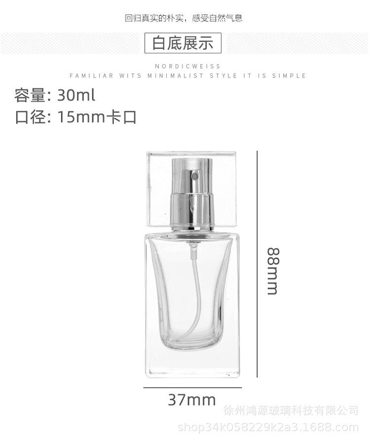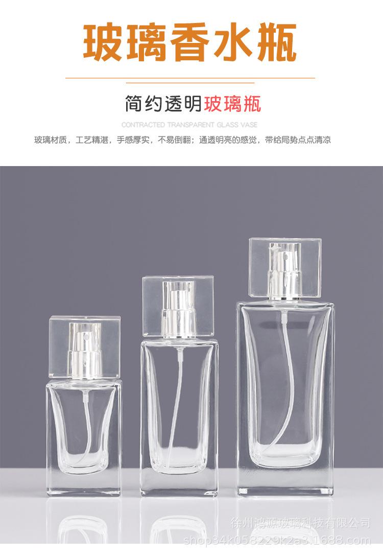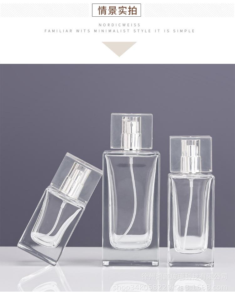 Envase de Vidrio Transparente para Perfume 30ml Cuadrado 50ml Frasco Atomizador Bayoneta 100ml Frasco Vacío Sub-Botella