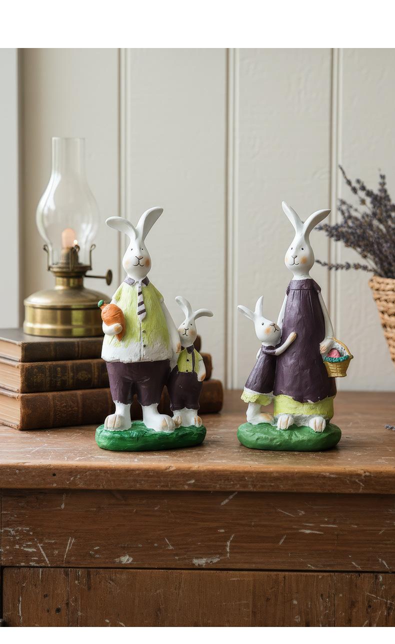 Maceta de flores retro con diseño de conejo de dibujos animados, decoración suave de estilo europeo, escultura de animal para decoración del hogar y de escritorio