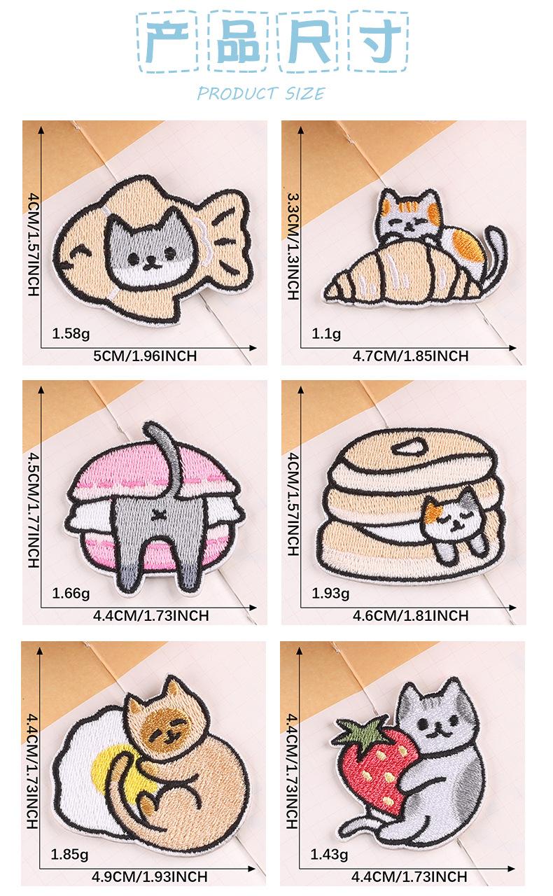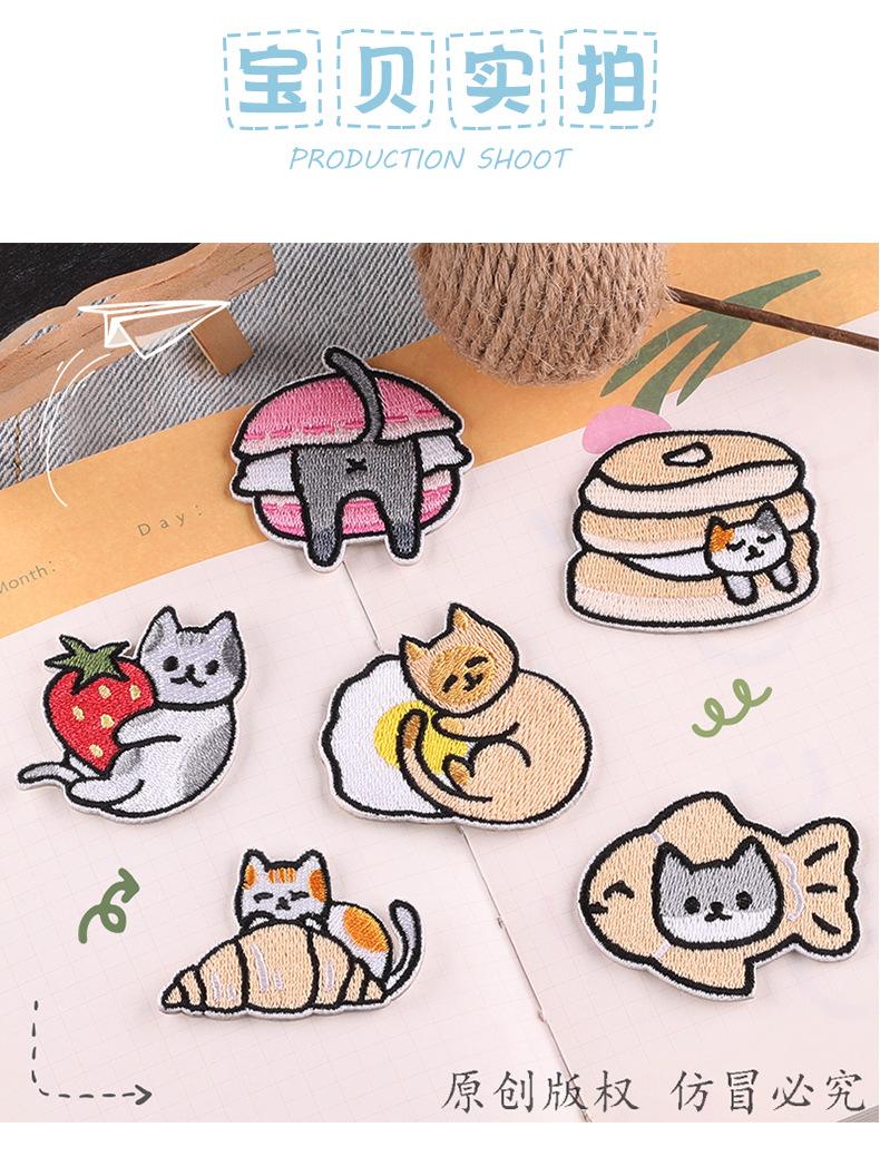 Etiqueta Bordada Original para Computadora Dibujo Animado Lindo Gato Accesorios para Ropa y Sombrero Calcomanías Bordadas Calcomanías de Parche para Cuenta de Mano Calcomanías de Cinta Autoadhesiva