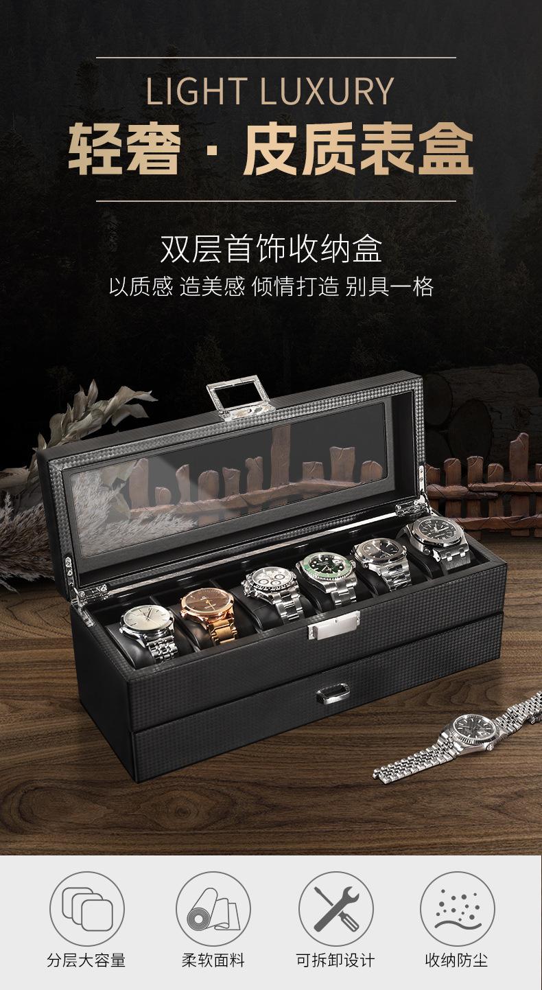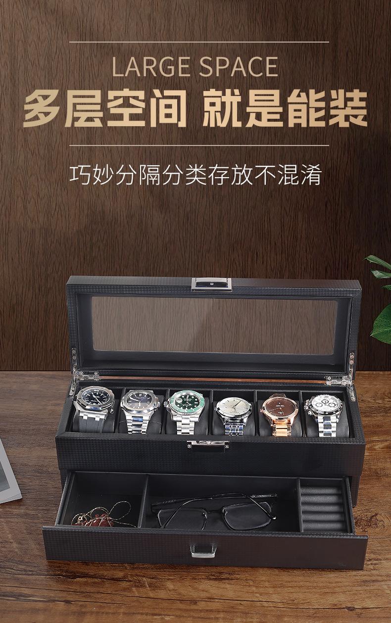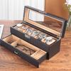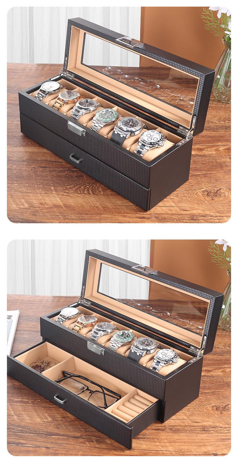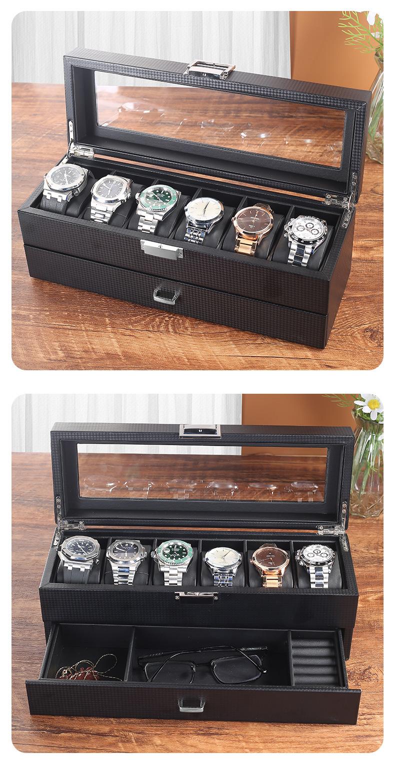 [Estilo]: Caja de joyería para relojes de fibra de carbono de doble capa para 6 relojes