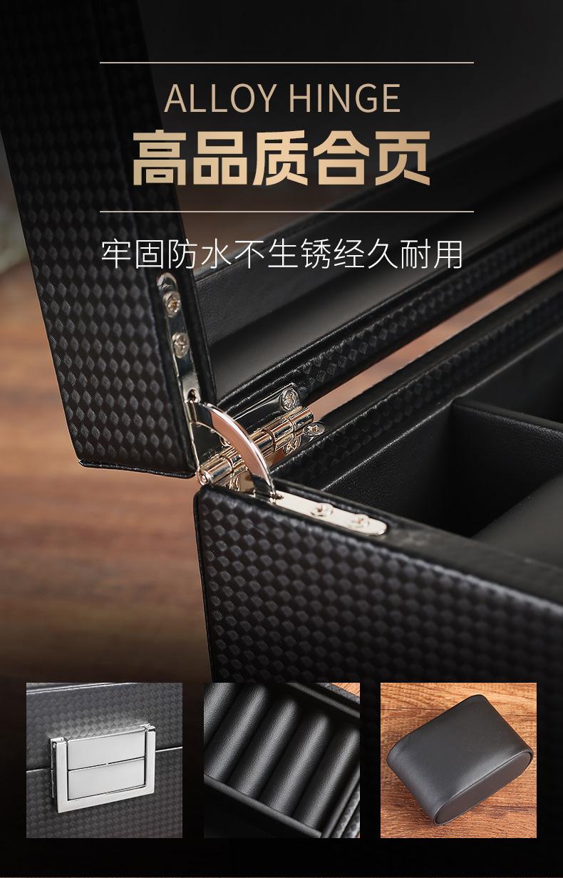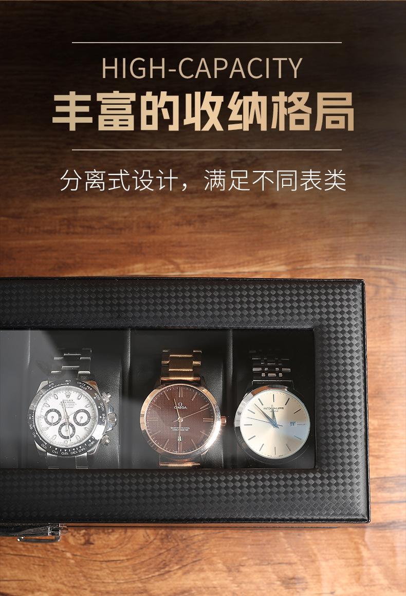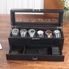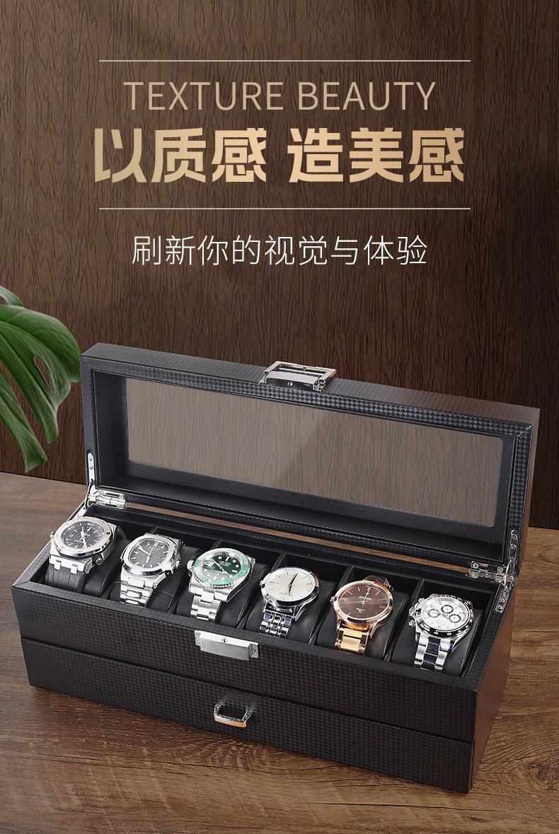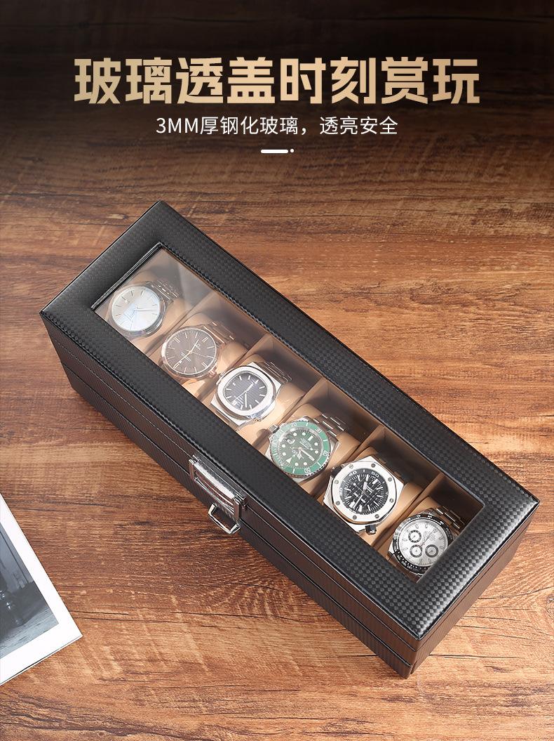 [Estilo]: Caja de joyería para relojes de fibra de carbono de doble capa para 6 relojes