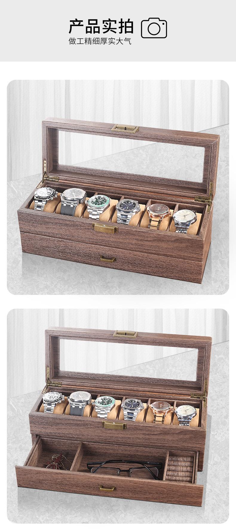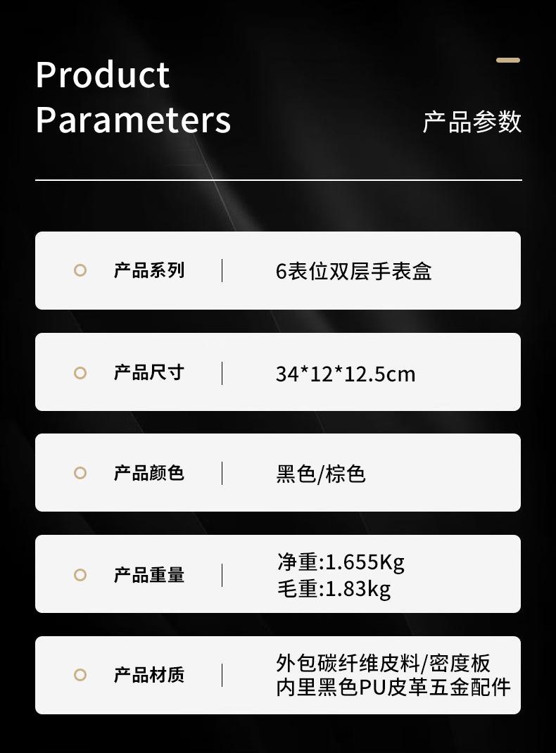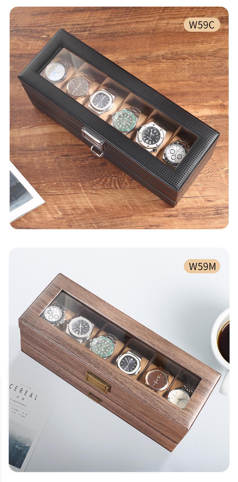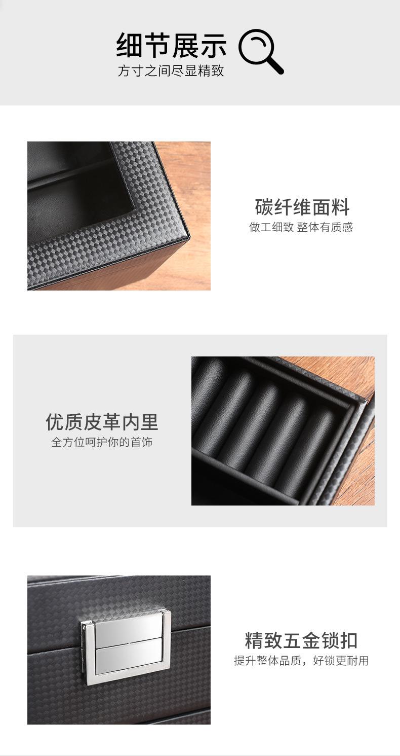 [Estilo]: Caja de joyería para relojes de fibra de carbono de doble capa para 6 relojes