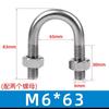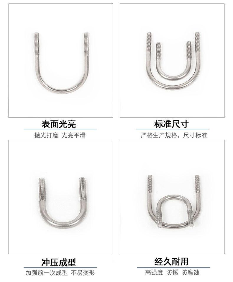 Perno en U M6M8M10M12mm, acero inoxidable 304, tornillo en forma de U, abrazadera en forma de U, hebilla de fijación de abrazadera de tubería en forma de U