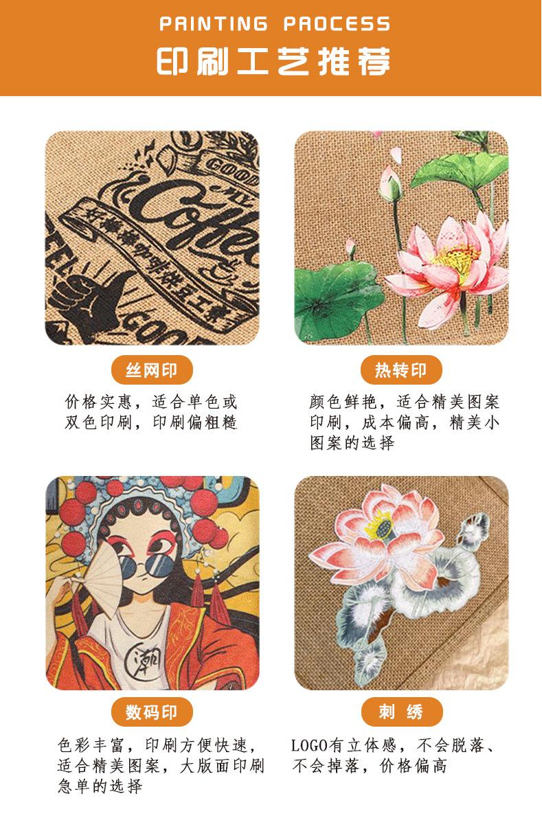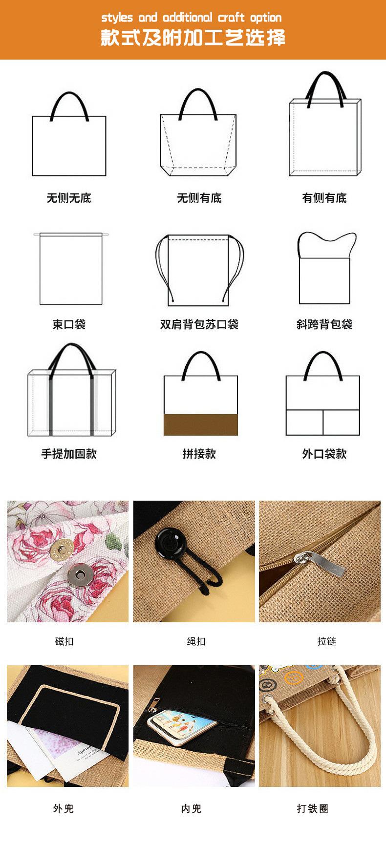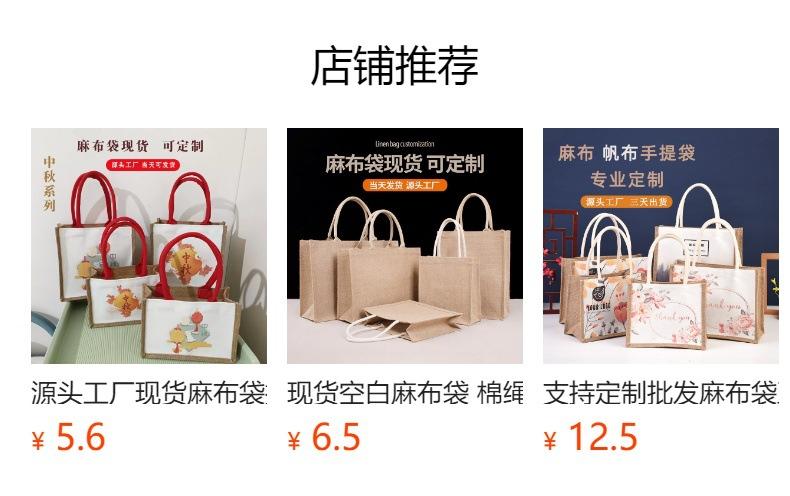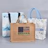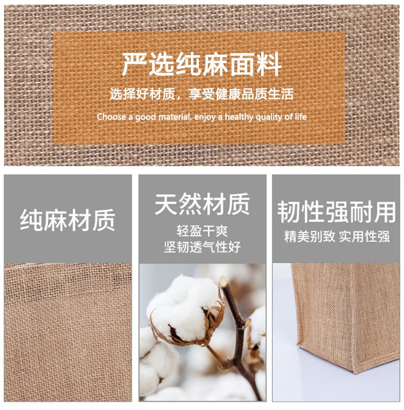 Bolsa de lino sin impresión, disponible en stock, con logotipo imprimible, bolsa de lino portátil con película de lino de algodón recubierta.