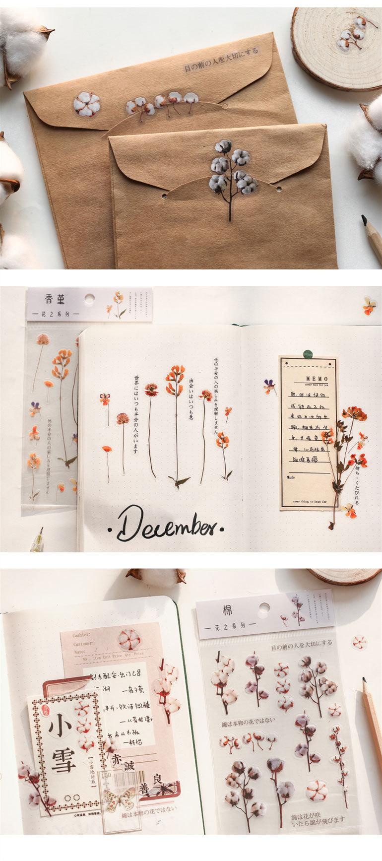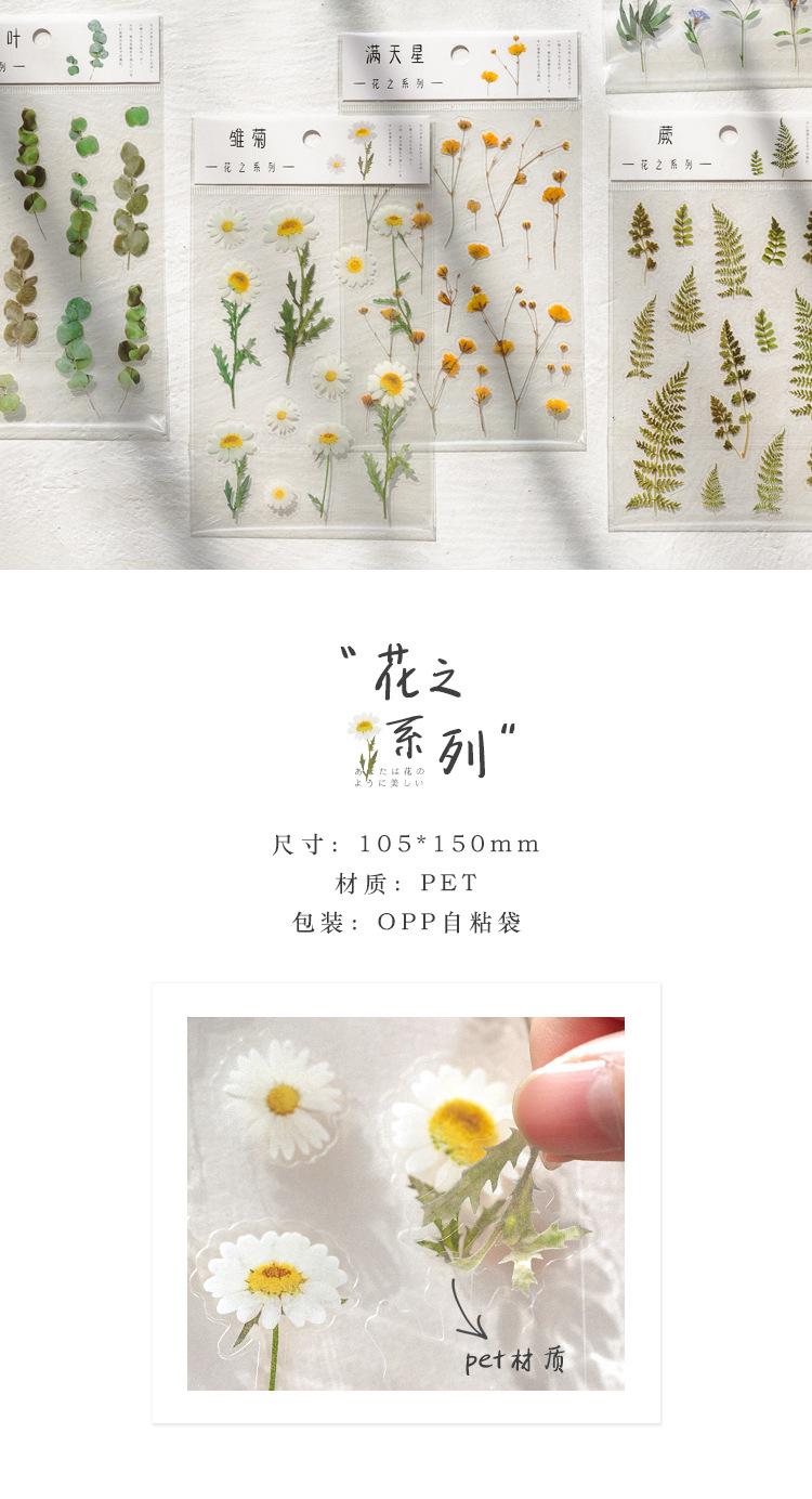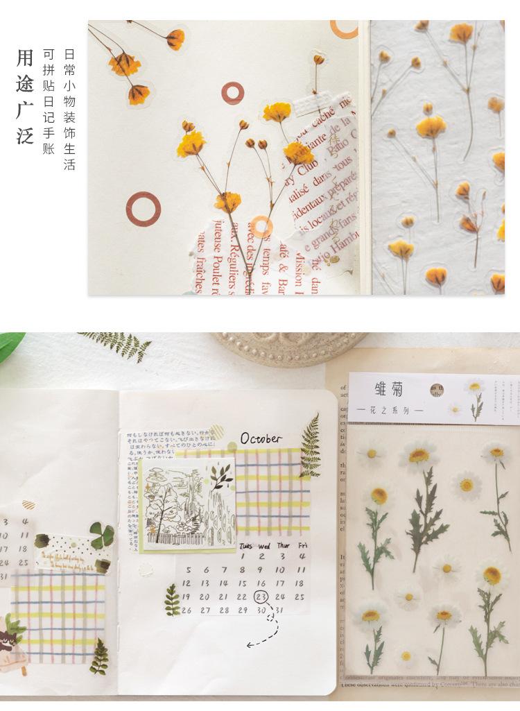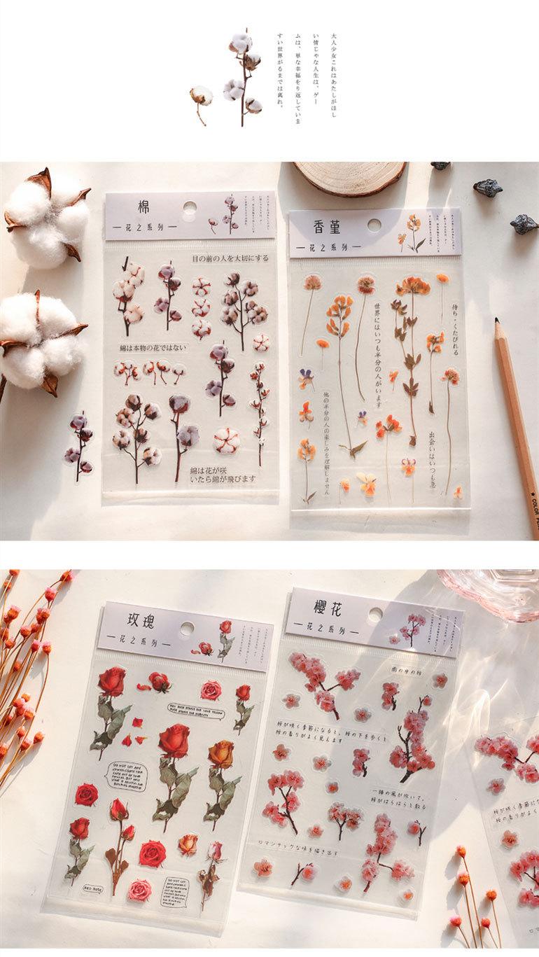 Calcomanías Transparentes para Mascotas Impermeables Vasos Aislados Flores y Plantas Frescas Pequeñas Material de Libro de Mano DIY Calcomanías Decorativas