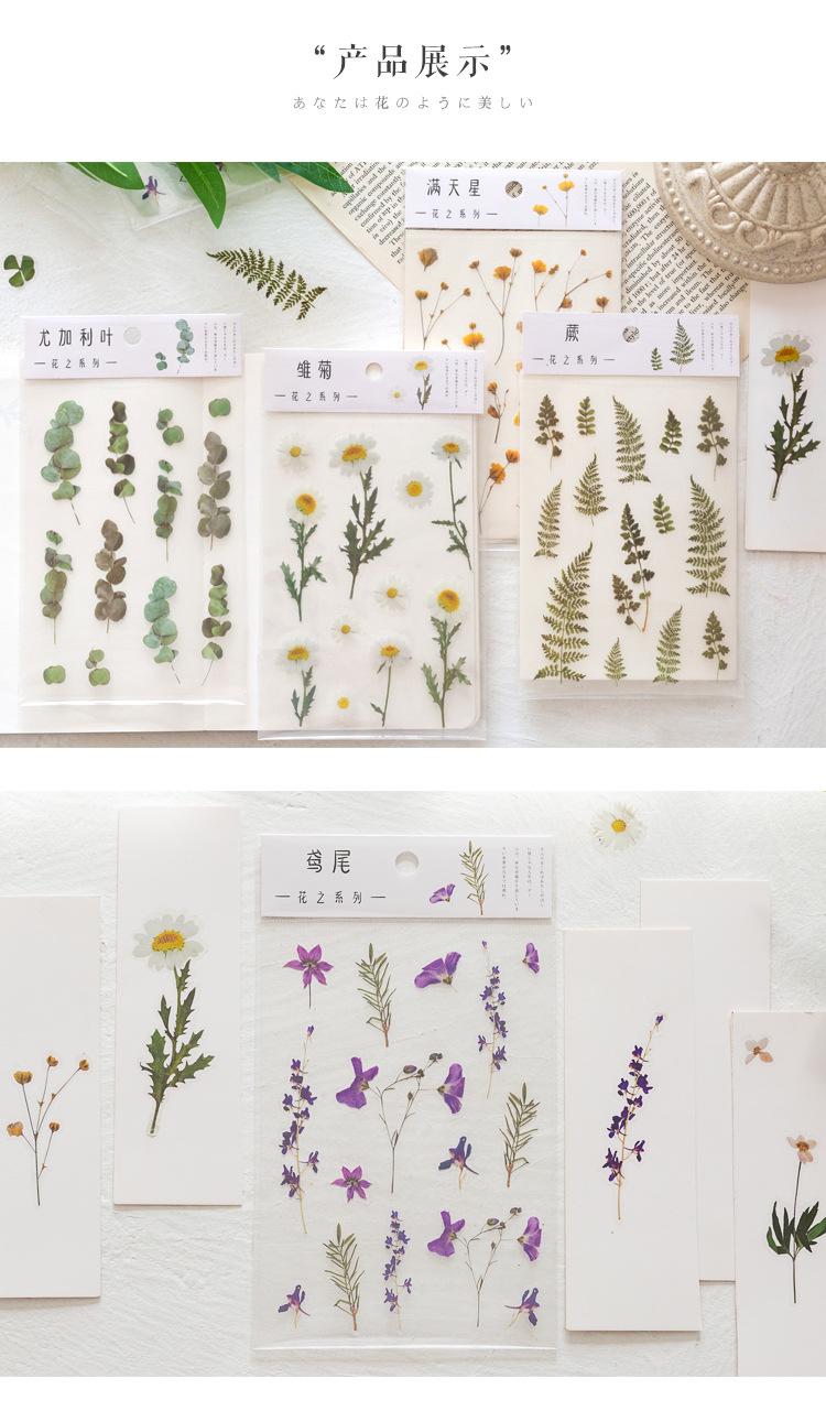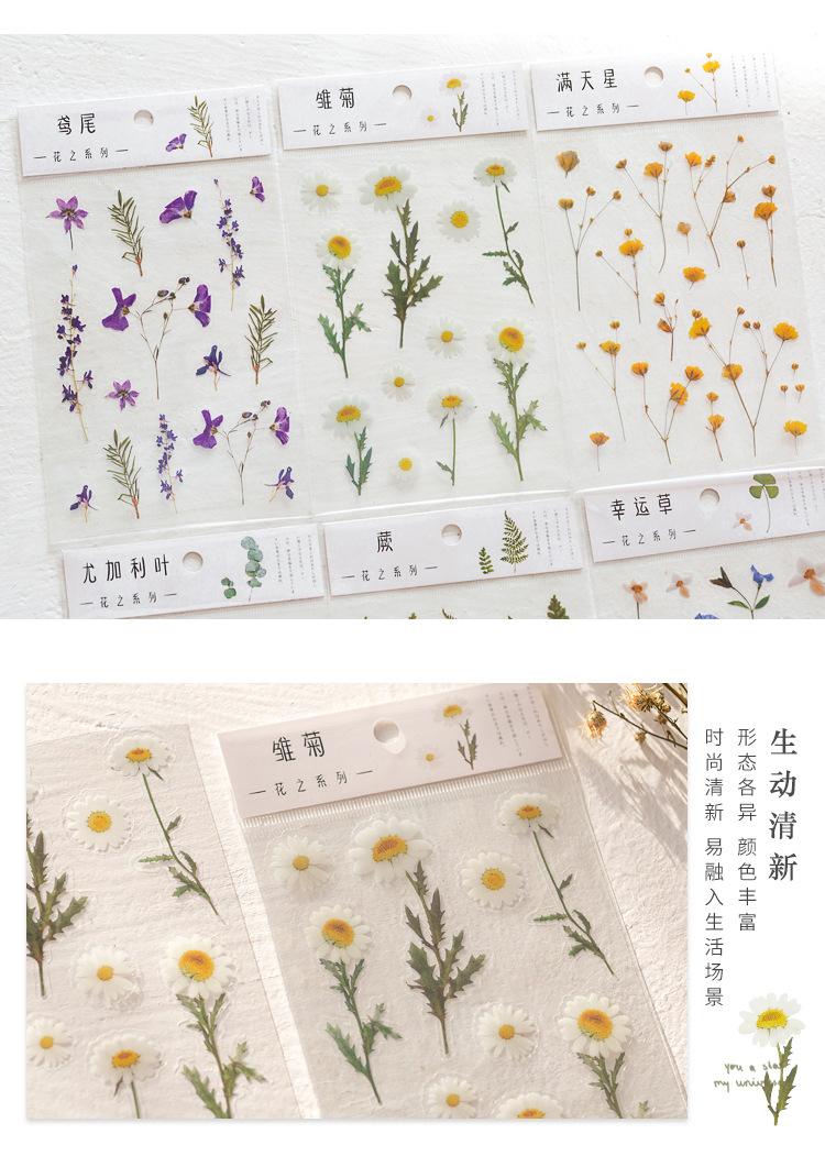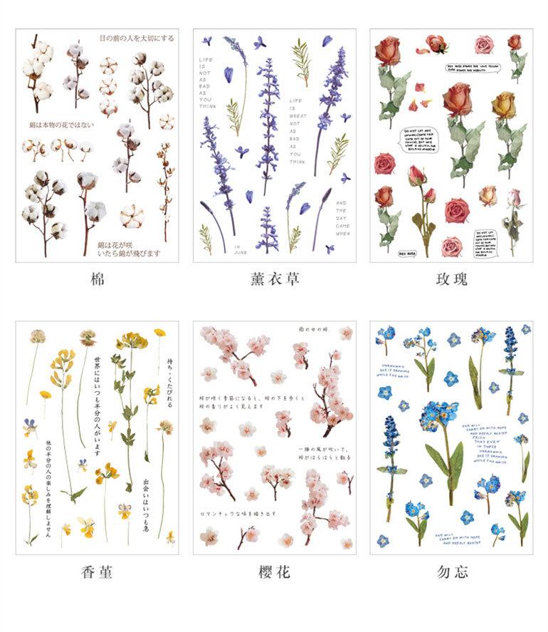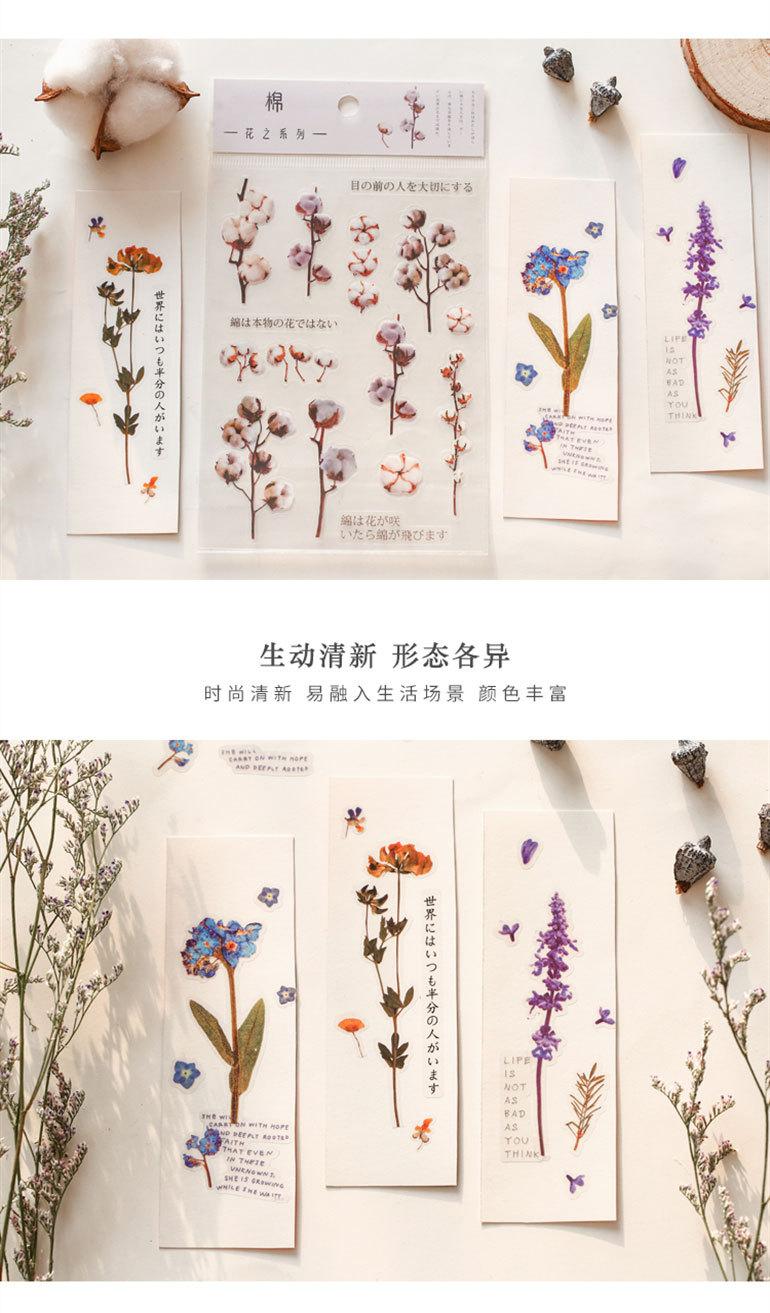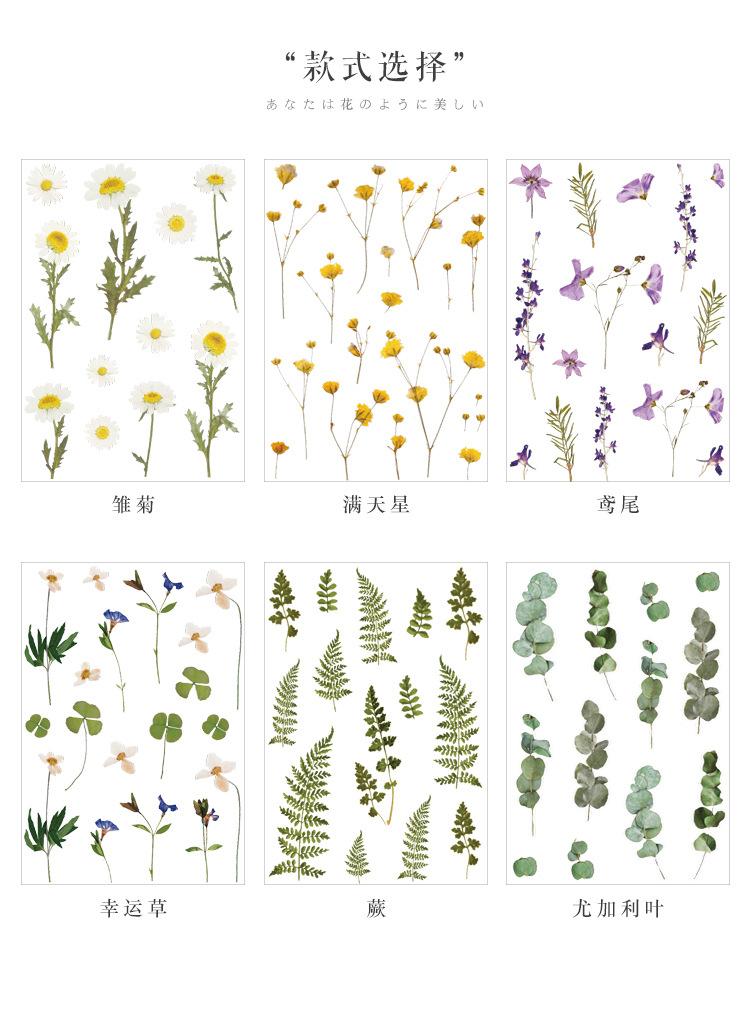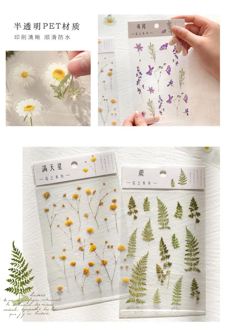 Calcomanías Transparentes para Mascotas Impermeables Vasos Aislados Flores y Plantas Frescas Pequeñas Material de Libro de Mano DIY Calcomanías Decorativas