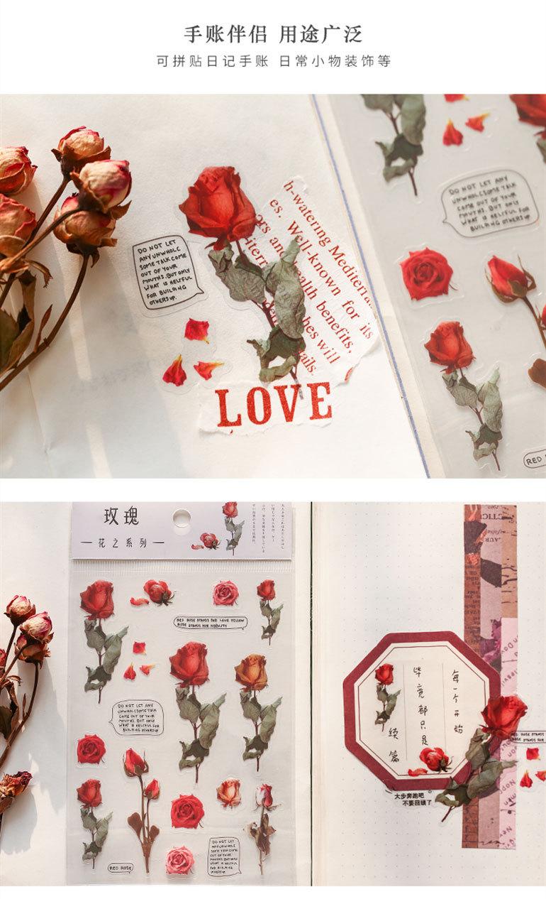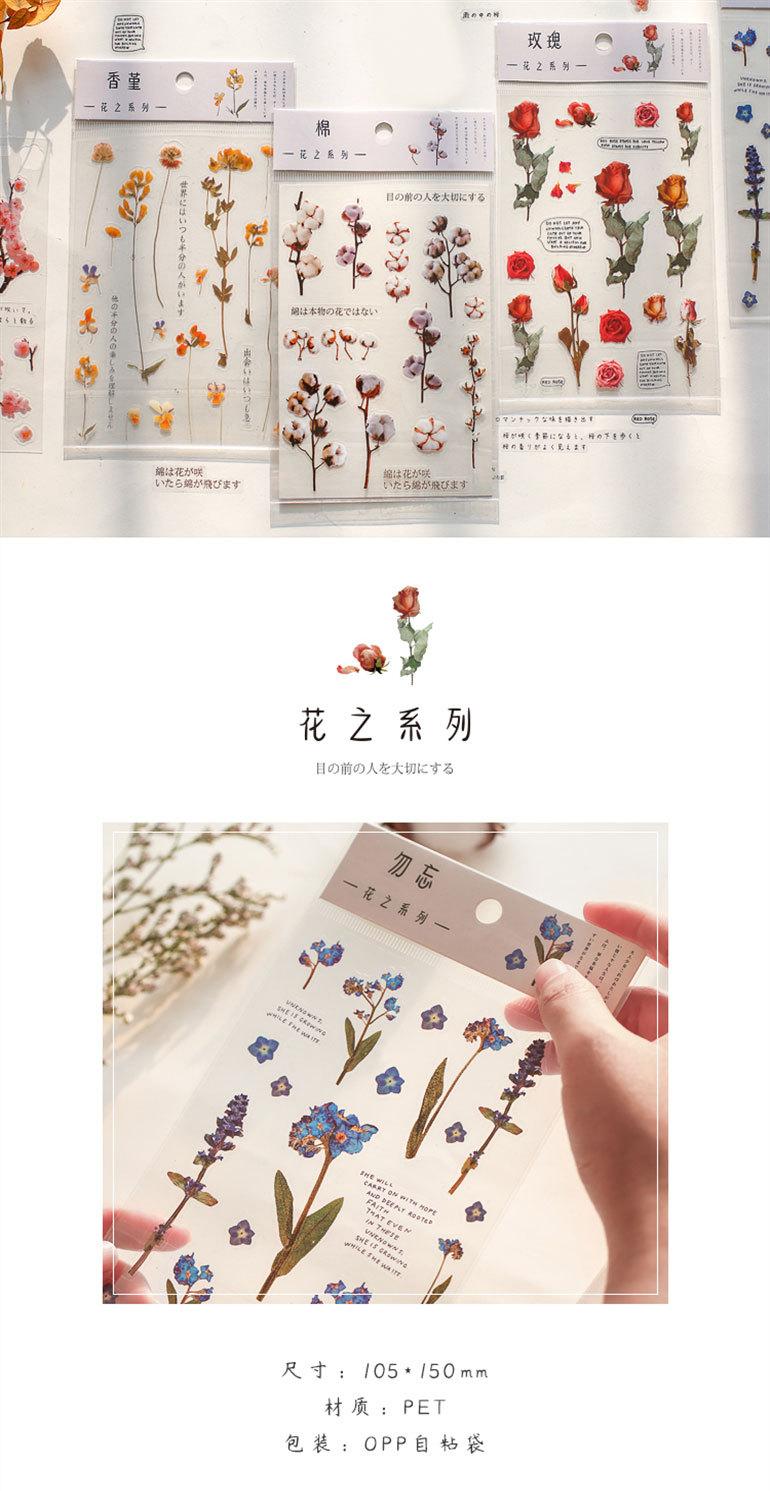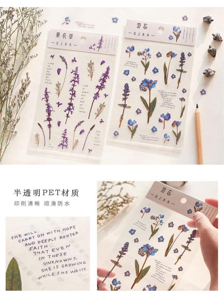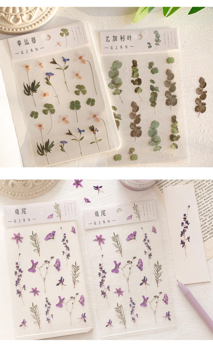 Calcomanías Transparentes para Mascotas Impermeables Vasos Aislados Flores y Plantas Frescas Pequeñas Material de Libro de Mano DIY Calcomanías Decorativas