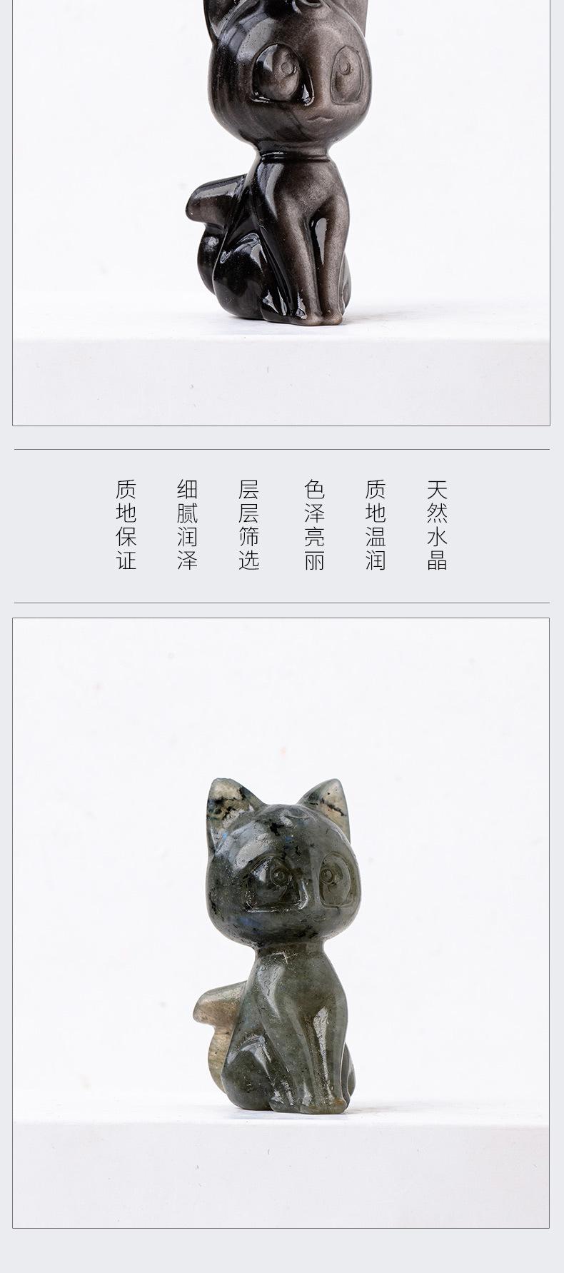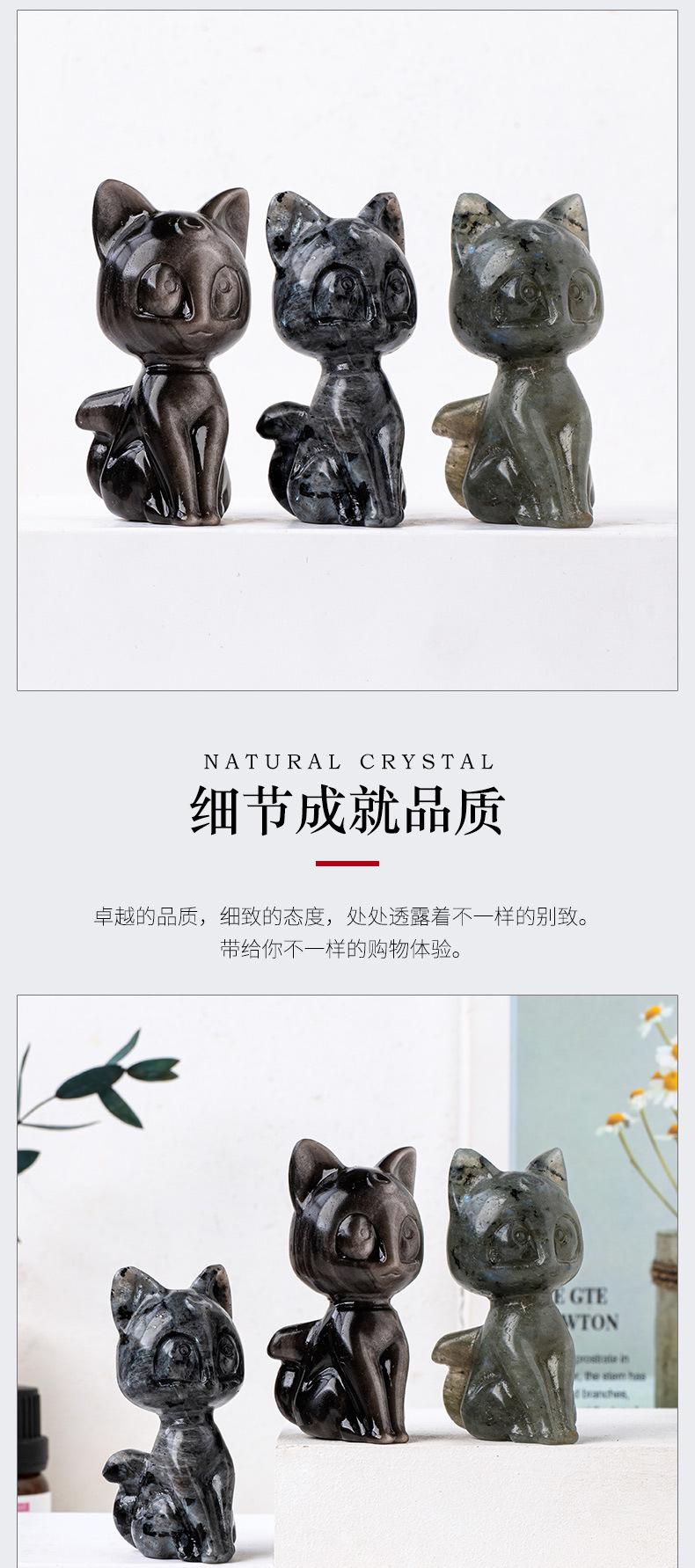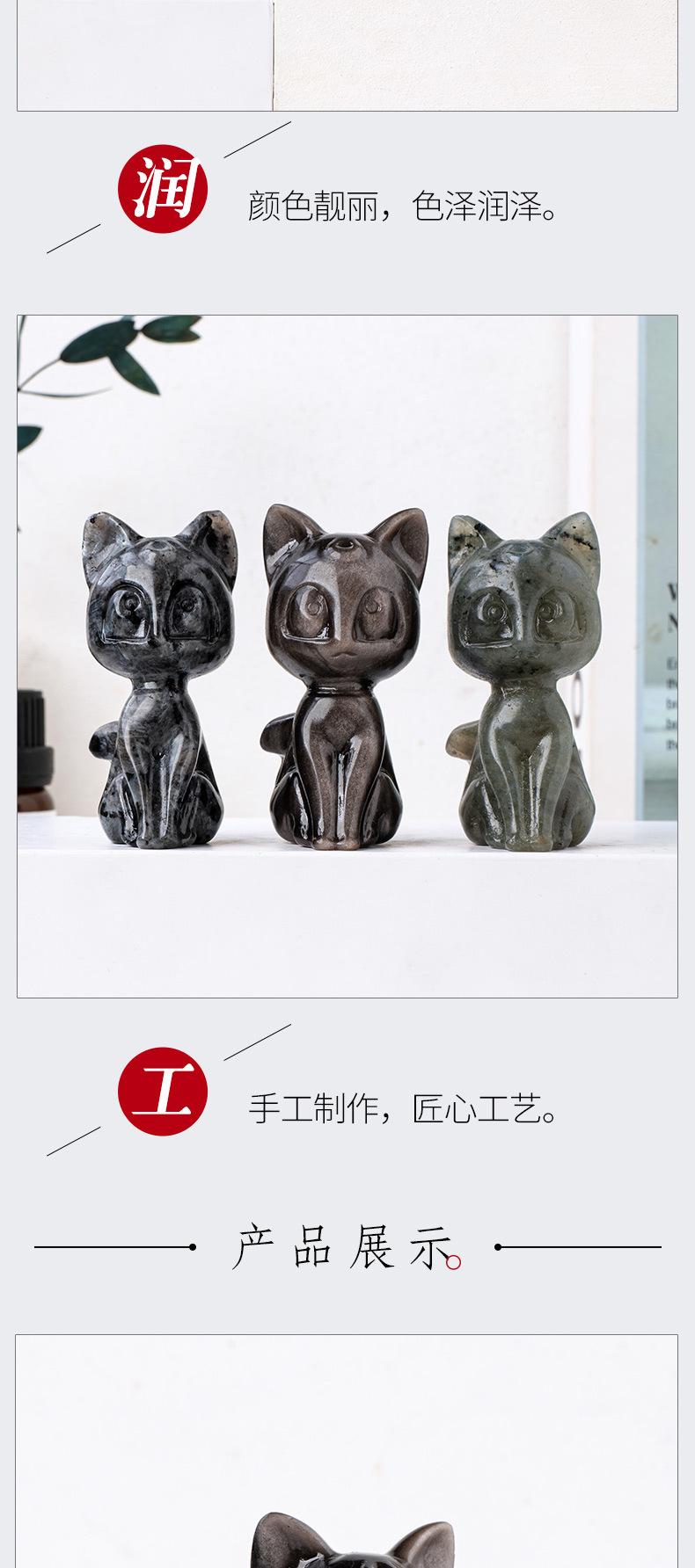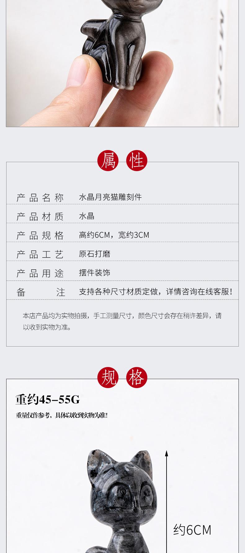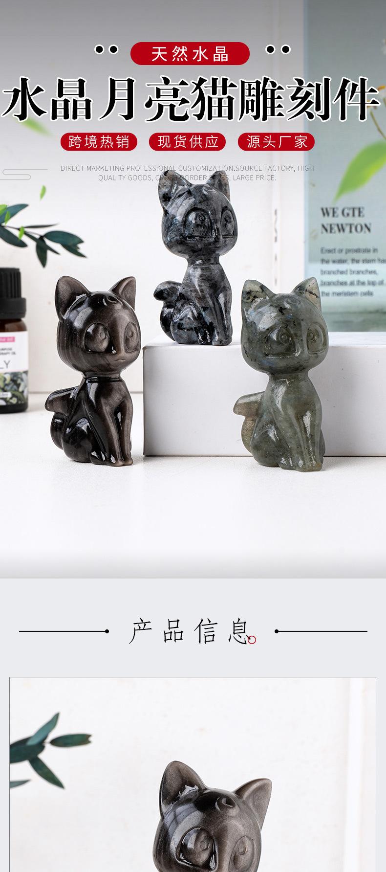 Piedra de plata de cristal natural, talla de gato lunar, piedra original pulida, artesanías de cristal, adornos de regalo para decoración del hogar