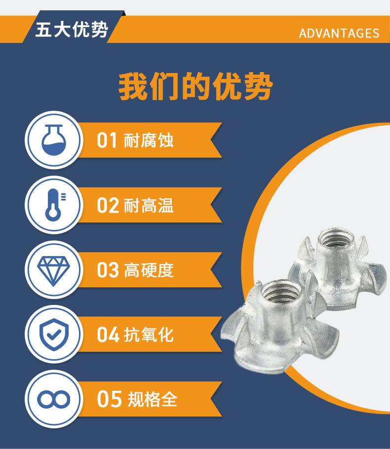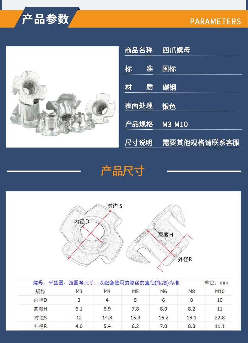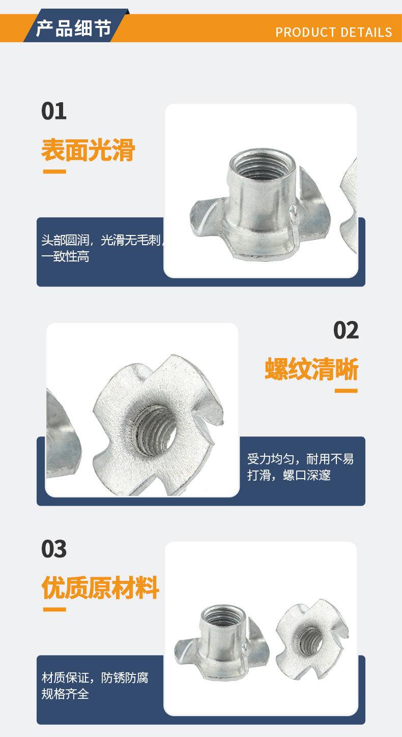 Tuerca galvanizada de cuatro garras para muebles, tuerca de garra, clavo de cuatro garras, tapa de tornillo con incrustaciones, M4M5M6M8