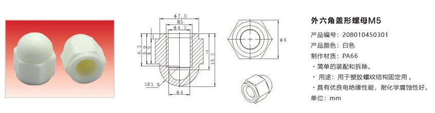 Tornillo de cabeza de nailon, tuerca esférica de plástico, tuerca de cabeza aislada, cabeza redonda, tapa decorativa, tuerca remachable M5
