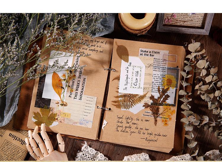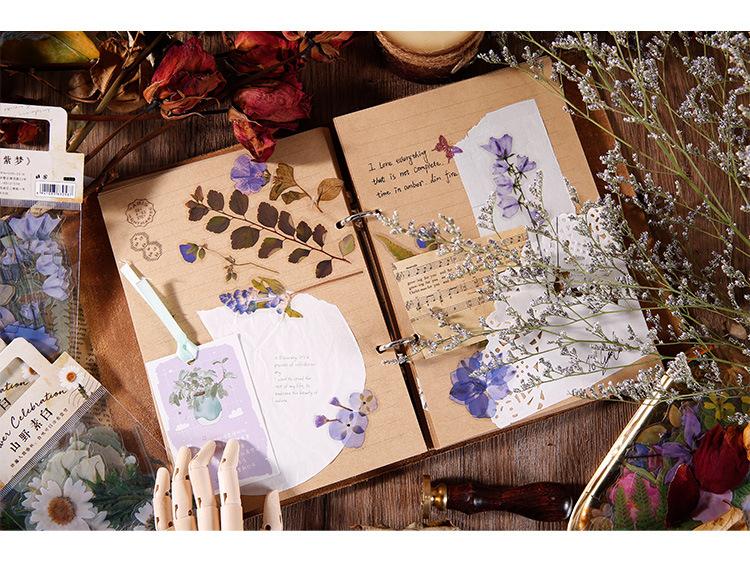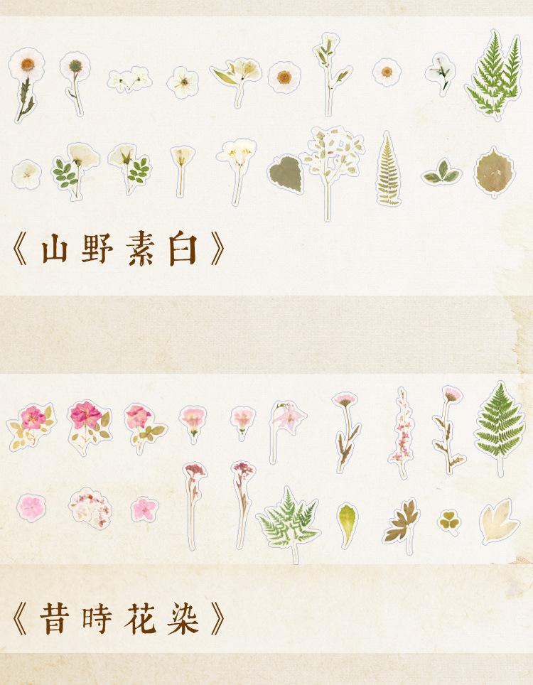 Paquete de Stickers para Mascotas Teñidos Mu Grabados Salvajes Plantas Flores Stickers Diario de Mano DIY Material Papel Stickers Decorativos