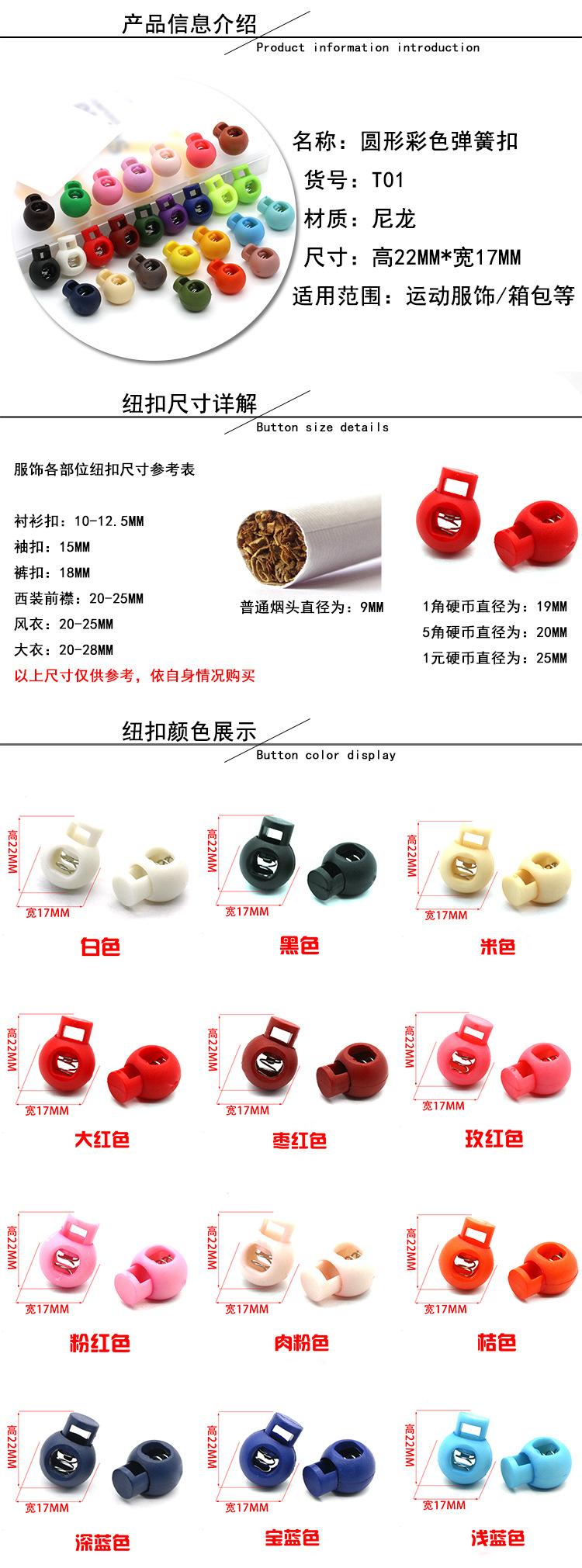 Botón Botón de plástico Campana hebilla apretada hebilla de resorte hebilla elástica ajustable hebilla de cuerda fija hebilla de cuerda hebilla de nariz de cerdo