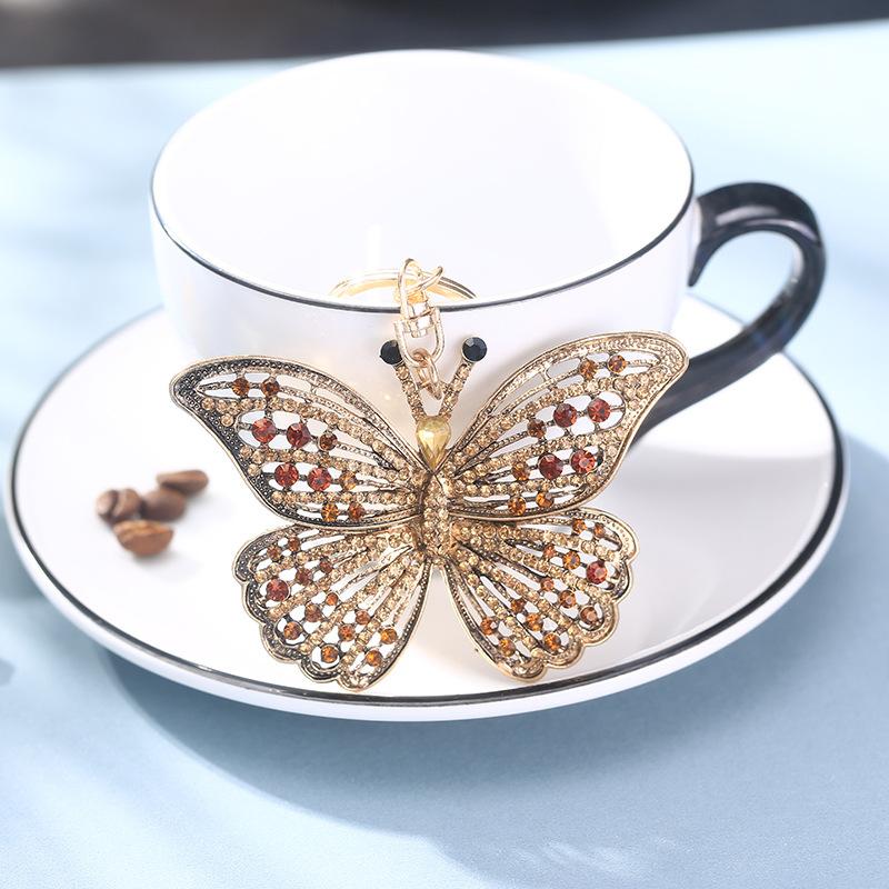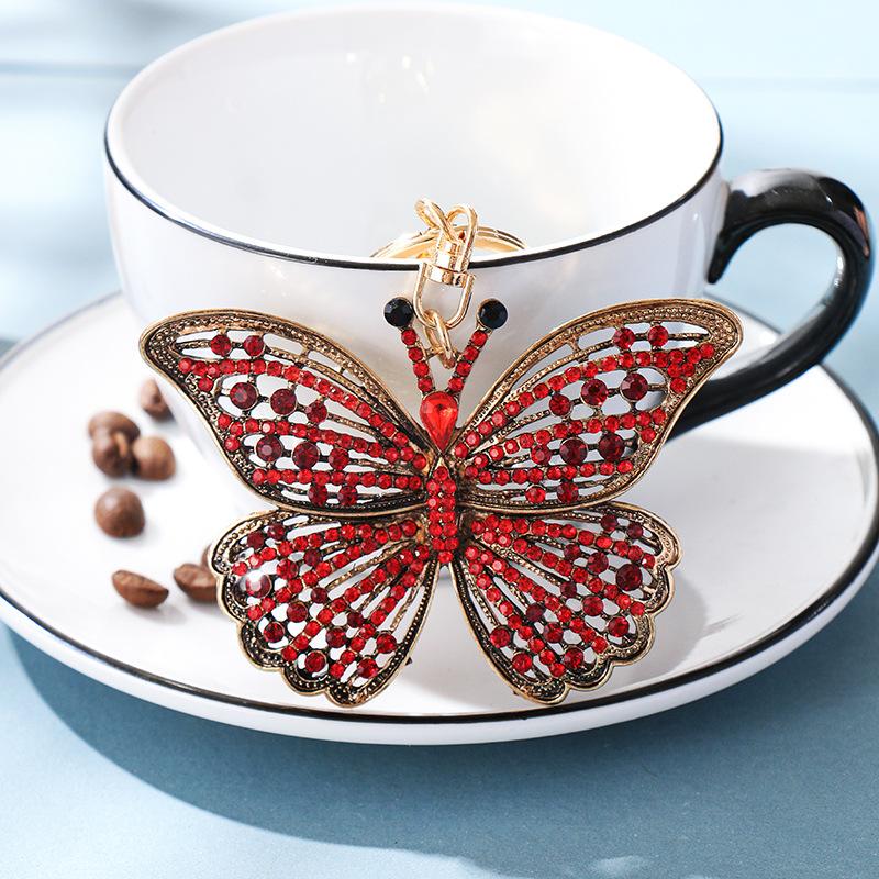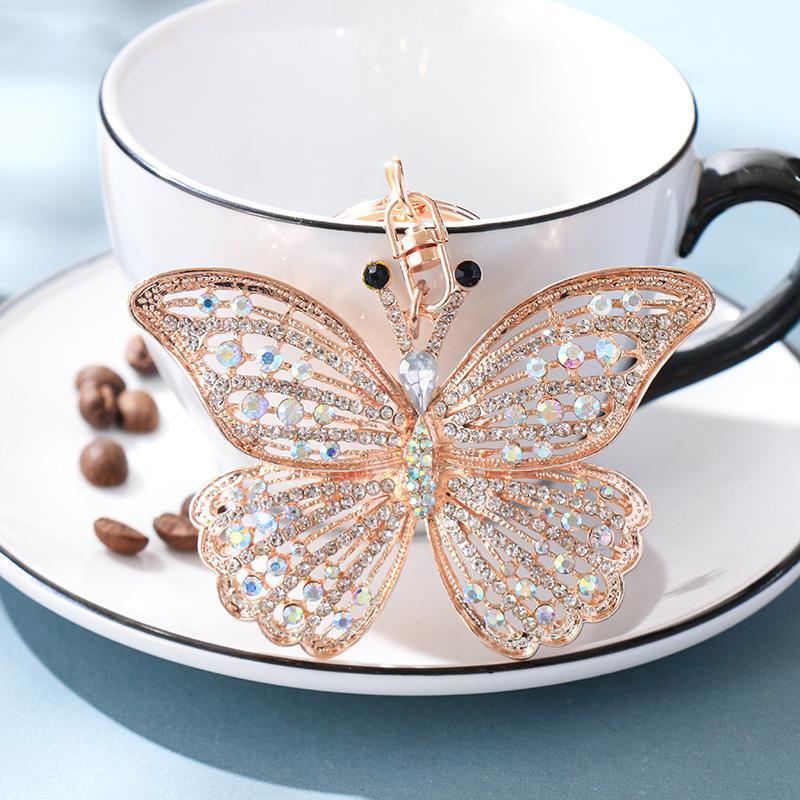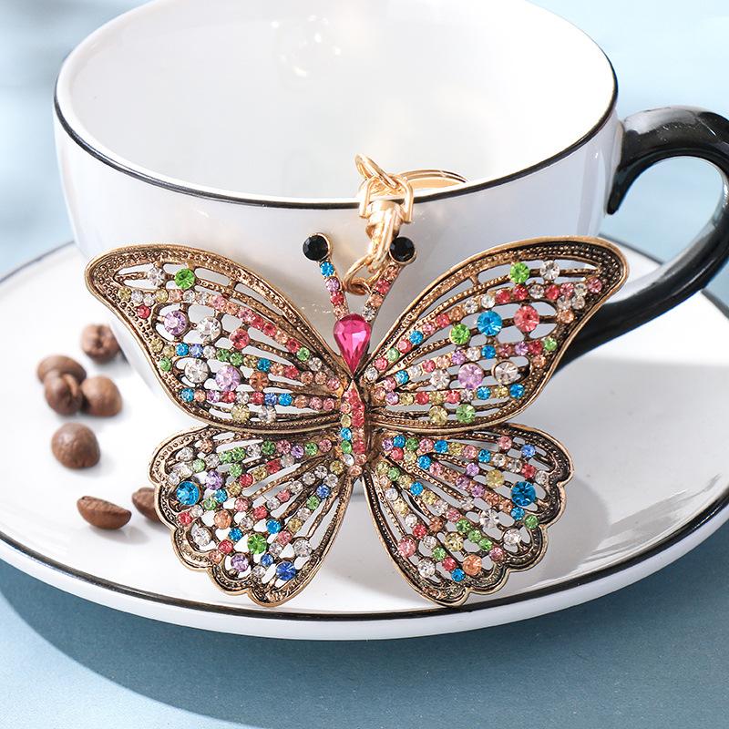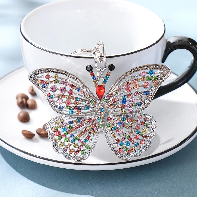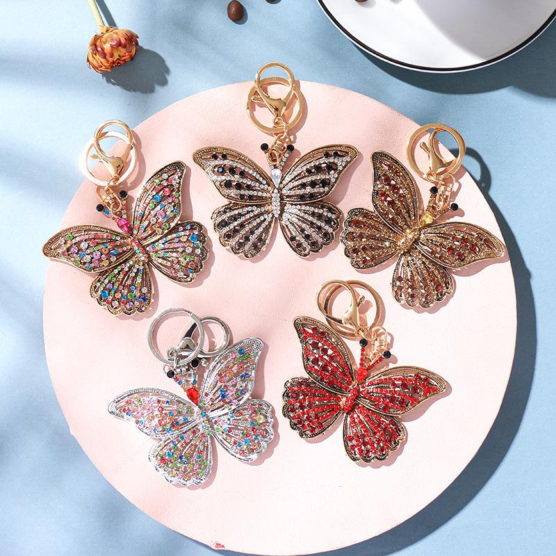 Nuevo colgante de mariposa con forma de diamante, llavero de insecto hueco de metal, colgante creativo, pequeño regalo