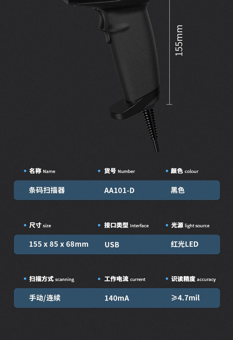 Deli Aa101-D Escáner Unidimensional Luz Roja Comercial Supermercado Express Hospital Producto Código de Barras Cajero Escáner Pistola