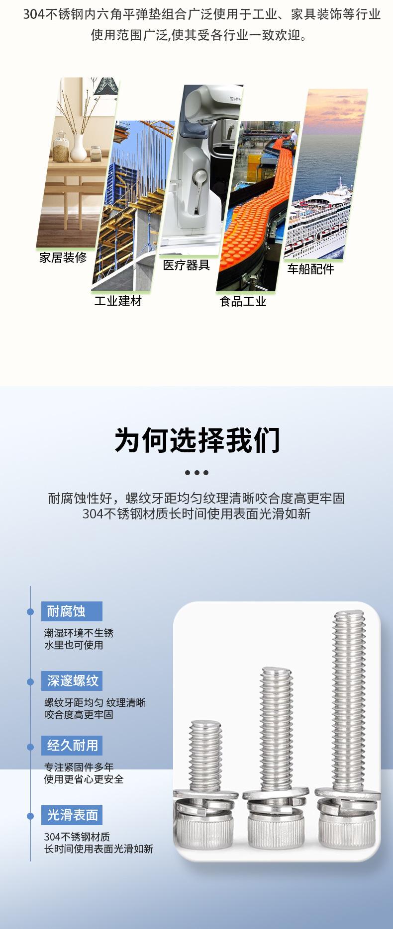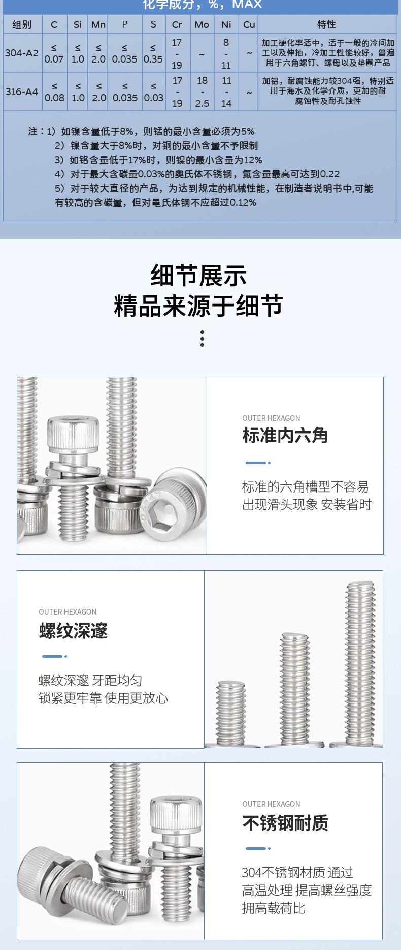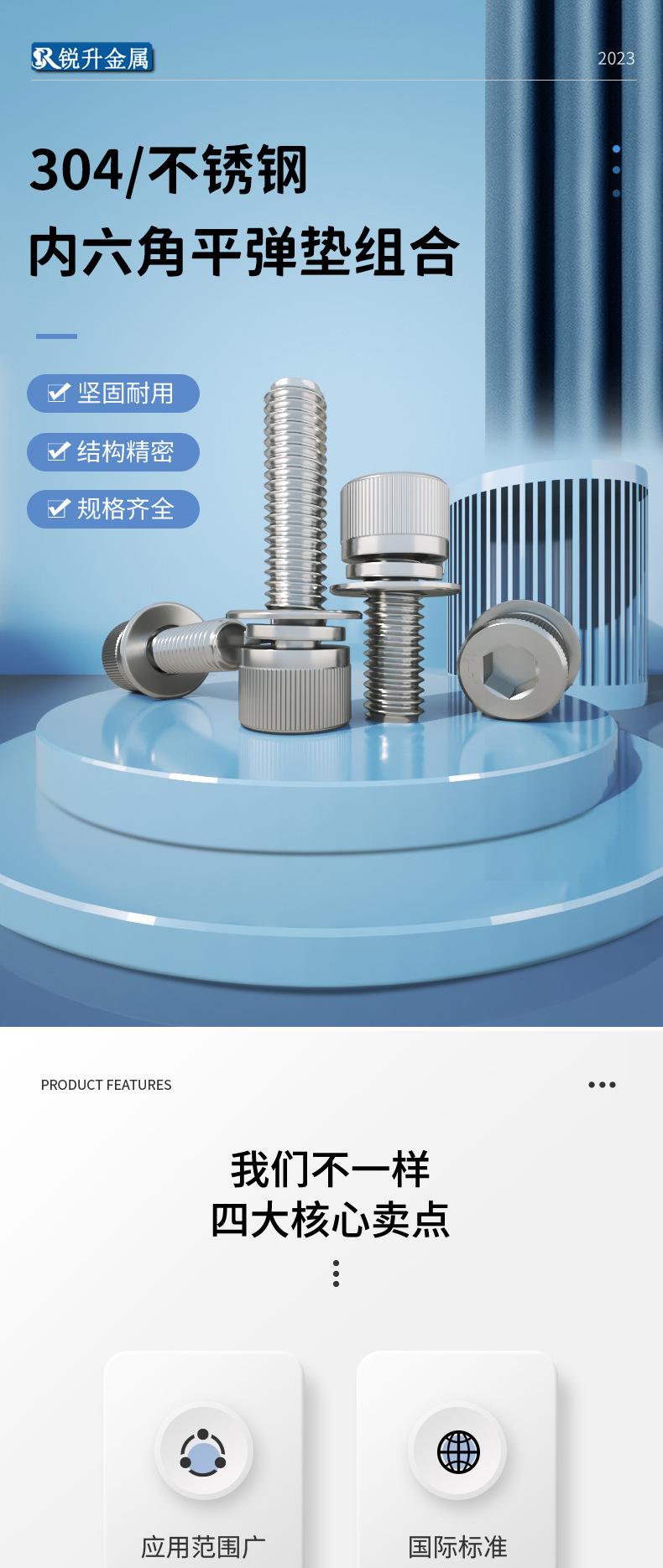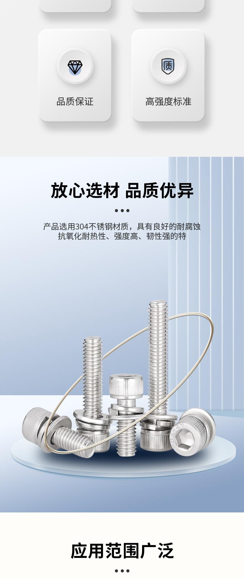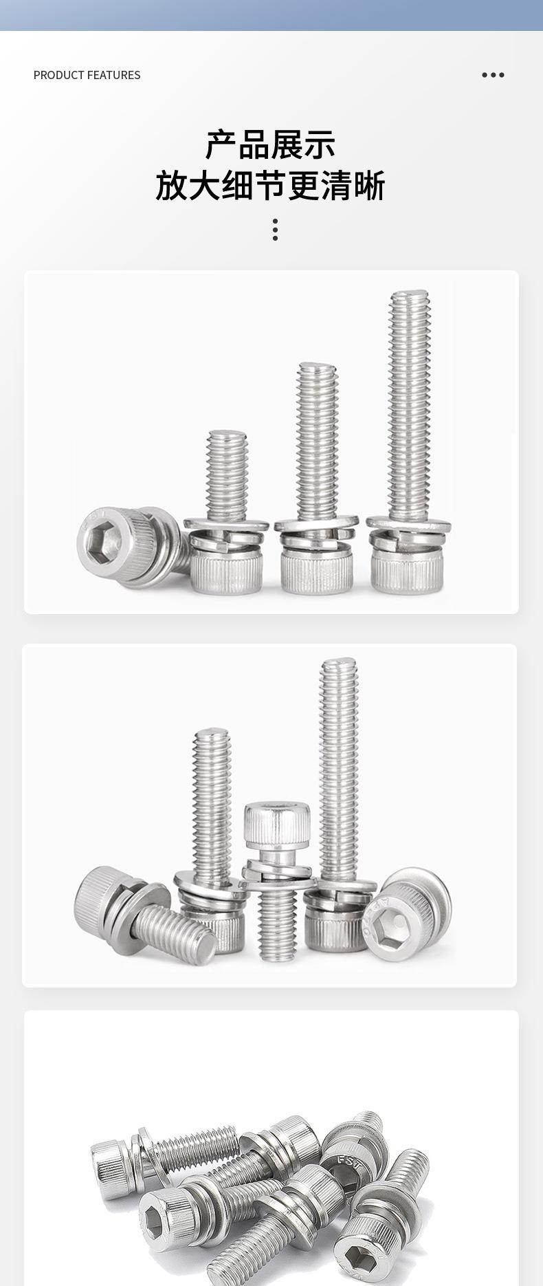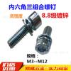 Pernos de combinación de tres piezas de acero inoxidable 304 con cabeza cilíndrica de hexágono interior, arandela plana y arandela elástica M2--M12 tornillos de combinación DIN912