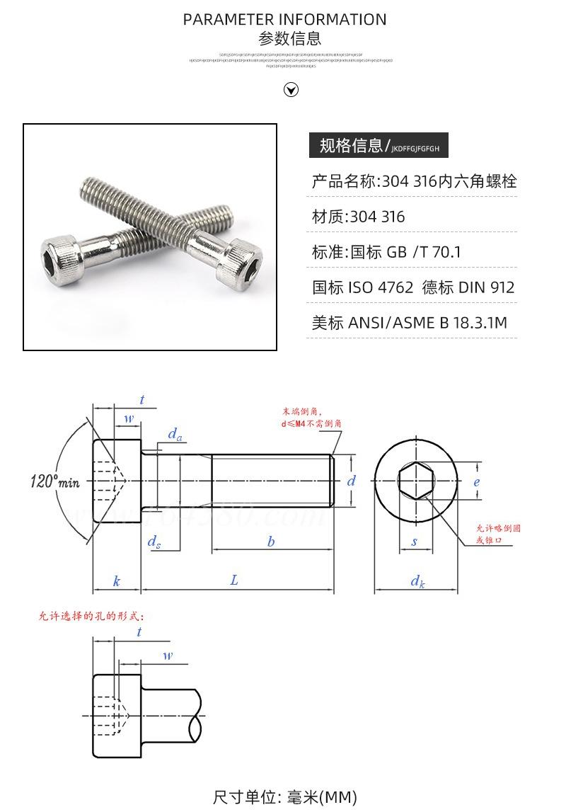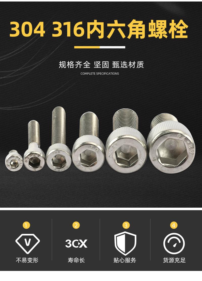 Suministro directo de fábrica de tornillo de cabeza hueca hexagonal DIN912 de acero inoxidable 304, tornillo de máquina de cabeza hueca hexagonal moleteado