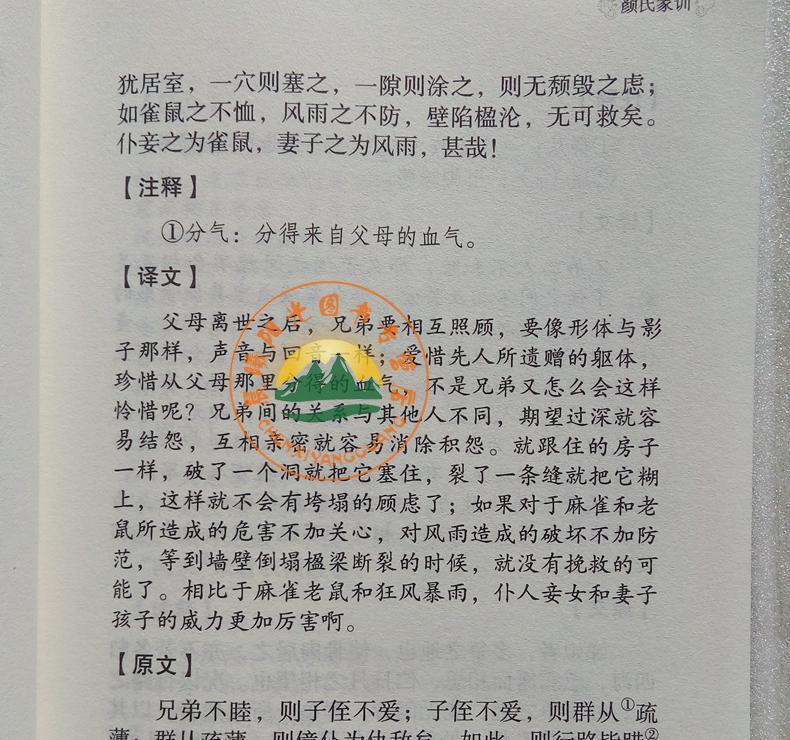La esencia de los libros de estudios chinos: Lema de la familia de Yan, texto y blanco, texto original + anotación + traducción