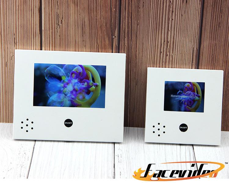 Tarjetas de felicitación en vídeo(Nota: Por su principio de funcionamiento, también se denomina tarjeta de felicitación electrónica). La tarjeta de felicitación de video es un nuevo producto que combina una tarjeta de felicitación tradicional con un reproductor de video MP4. Su objetivo es añadir un reproductor de video LCD a la tarjeta de felicitación tradicional, lo que le permite tener las funciones de una tarjeta de felicitación tradicional y reproducir imágenes o videos.