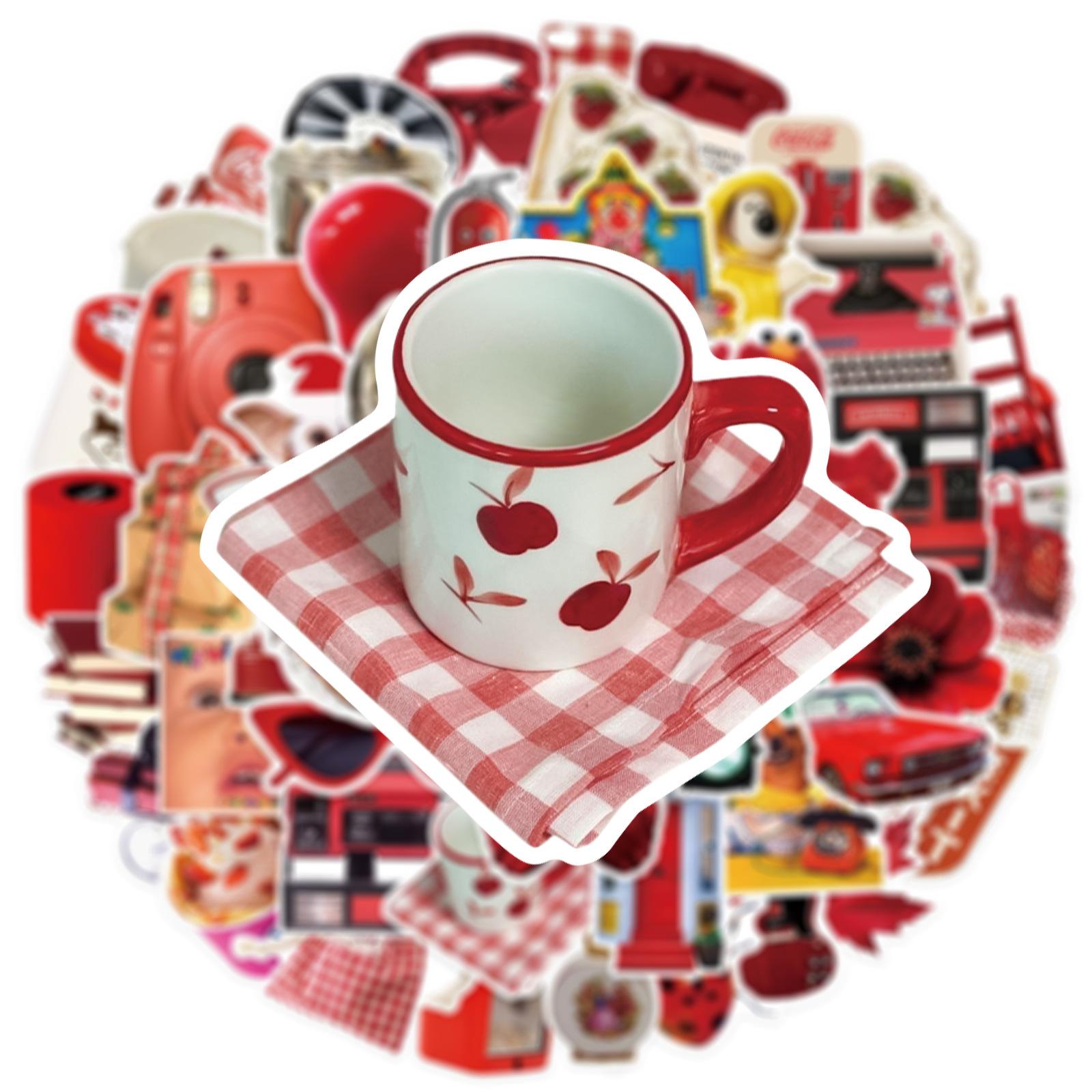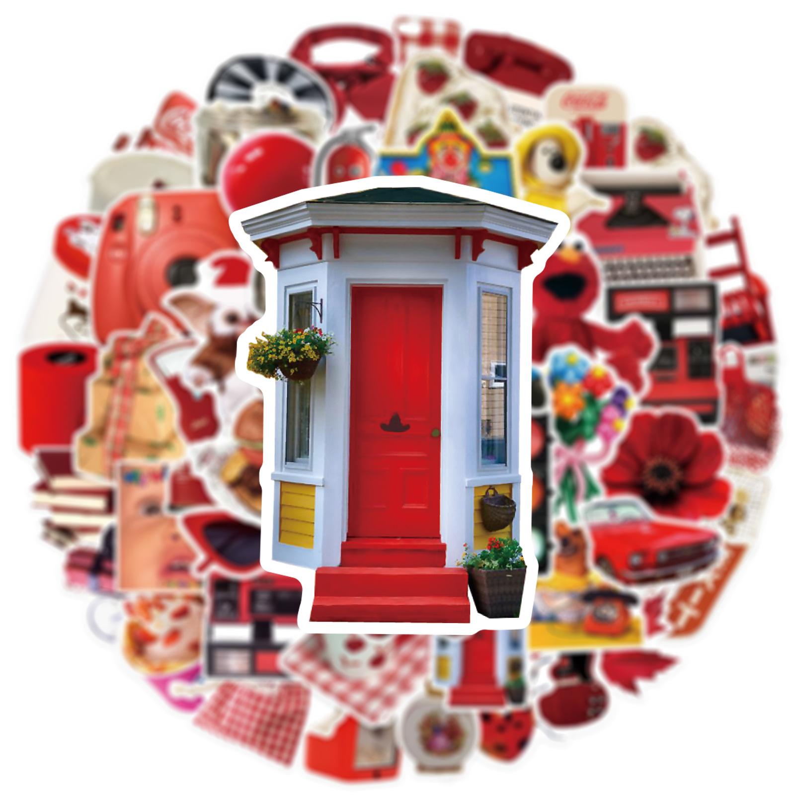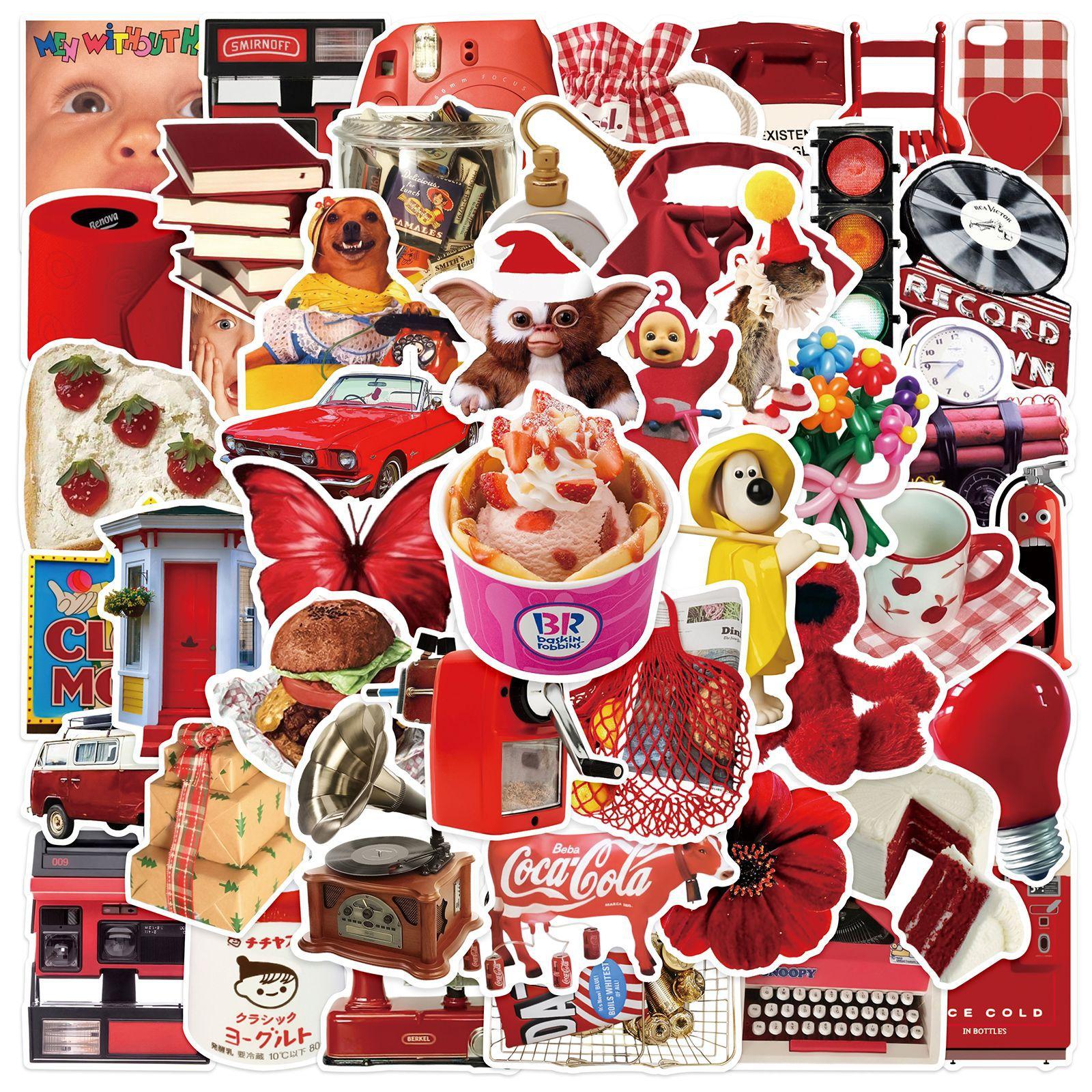 50 pegatinas de grafiti rojas sencillas, nuevas, para funda de móvil, maleta, taza de agua, guitarra plana, casco, pegatinas impermeables