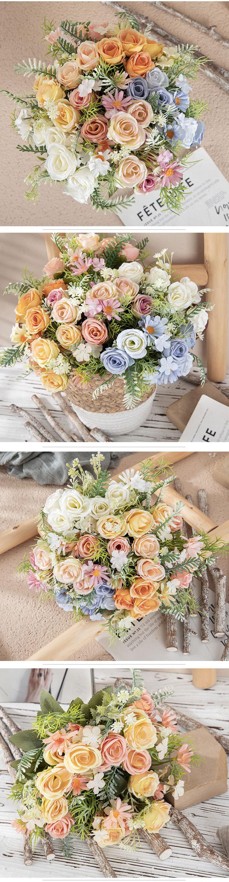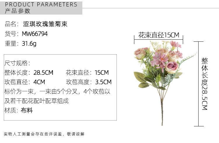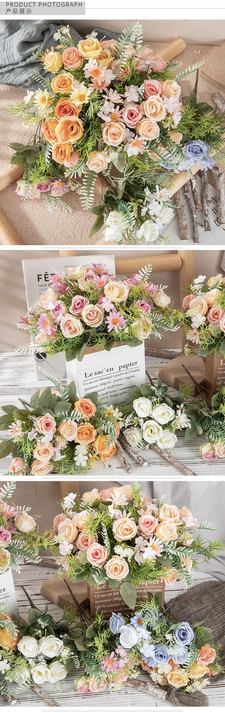 Ramo de combinación de rosas y margaritas transfronterizas, estilo INS, flores artificiales, decoración de mesa de comedor, decoración de oficina en casa