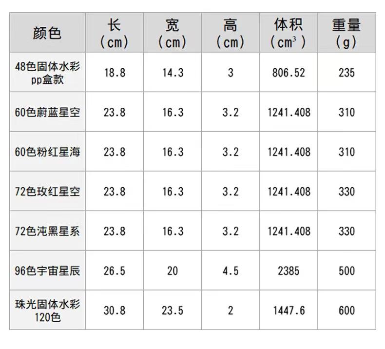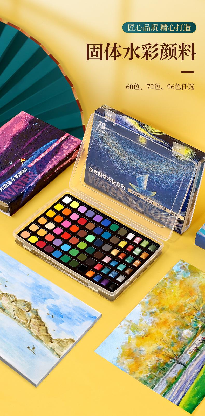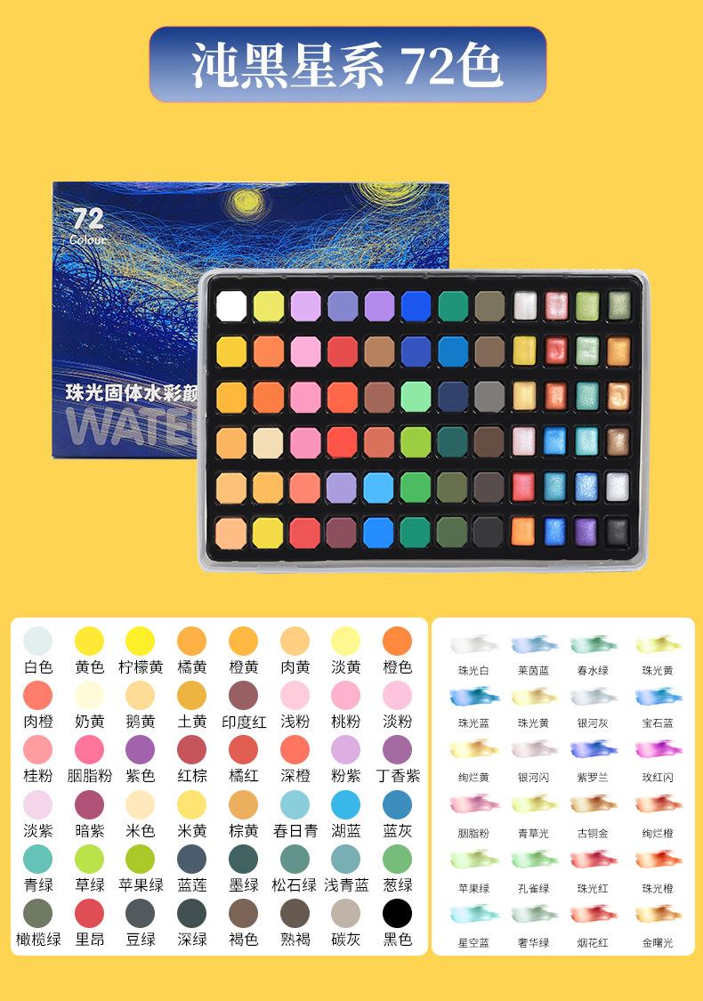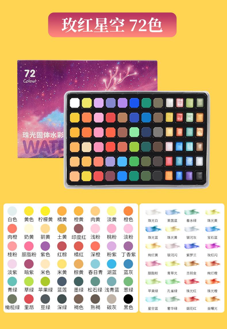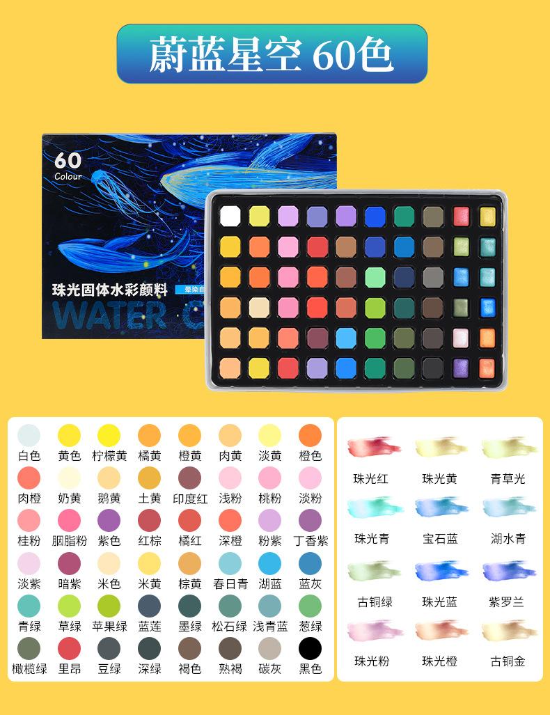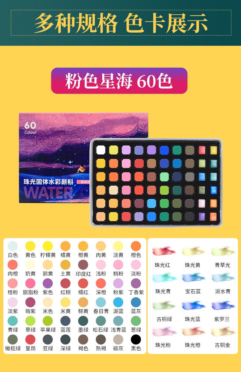48 colors solid watercolor pp box model, 60 colors blue starry sky, 60 colors pink sea of stars, 72 colors ros...