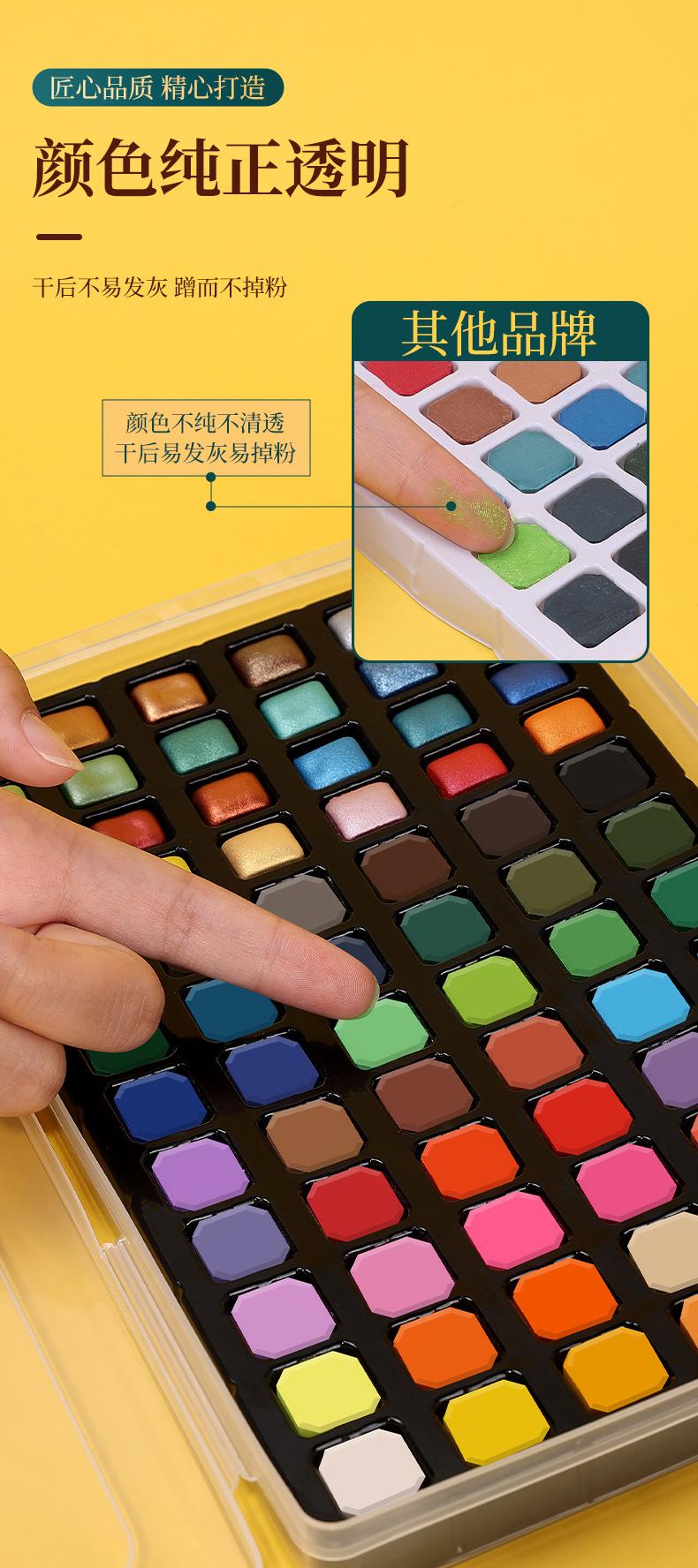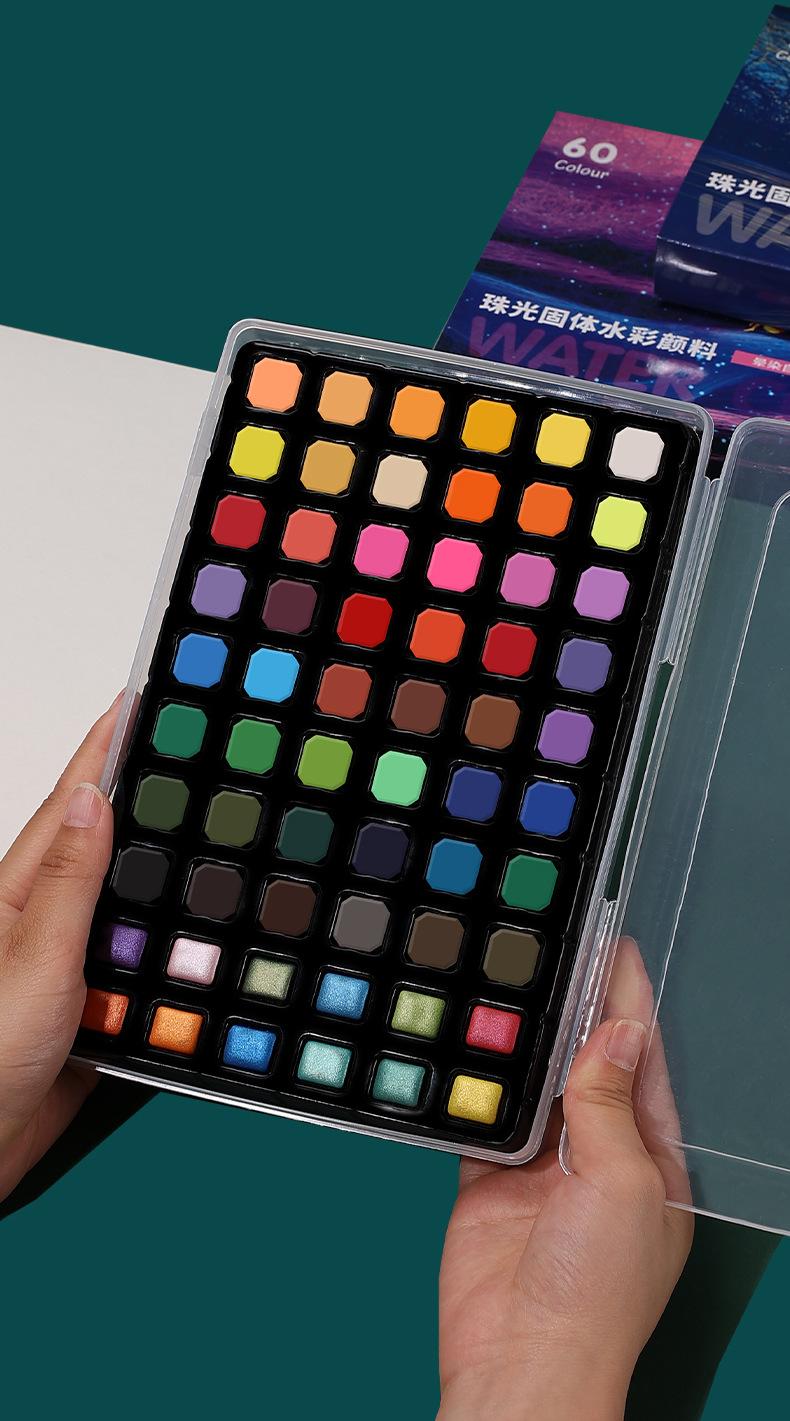 Juego completo de acuarela sólida perlada, 60/96/120 colores, herramientas de pintura portátiles para principiantes y niños.
