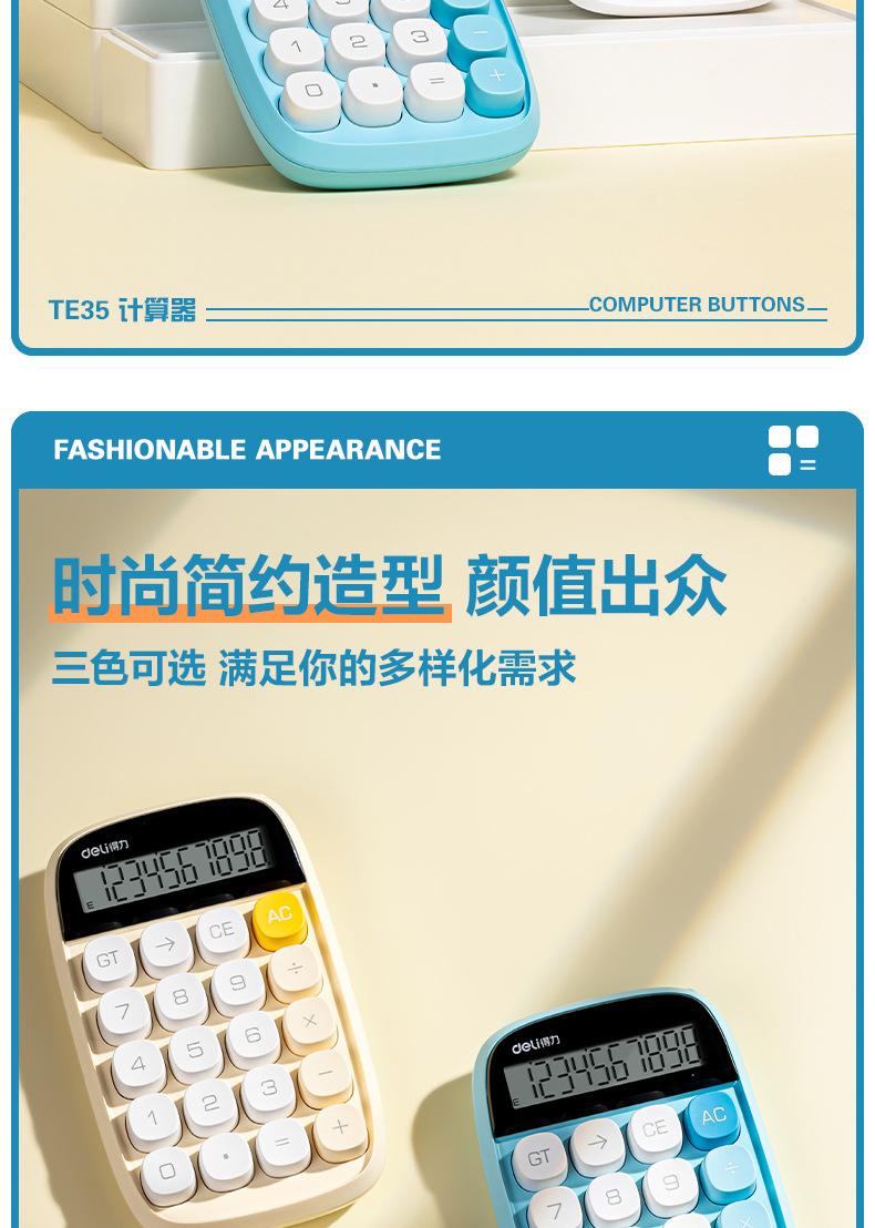 Calculadora de escritorio Deli TE35, con botones grandes, moderna, multicolor, para oficina, de 10 bits