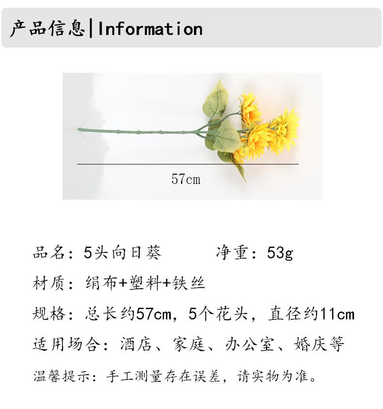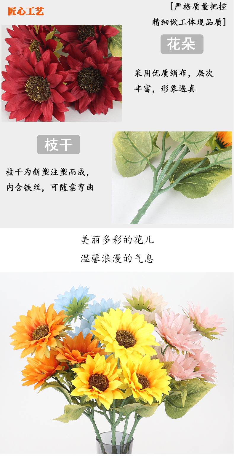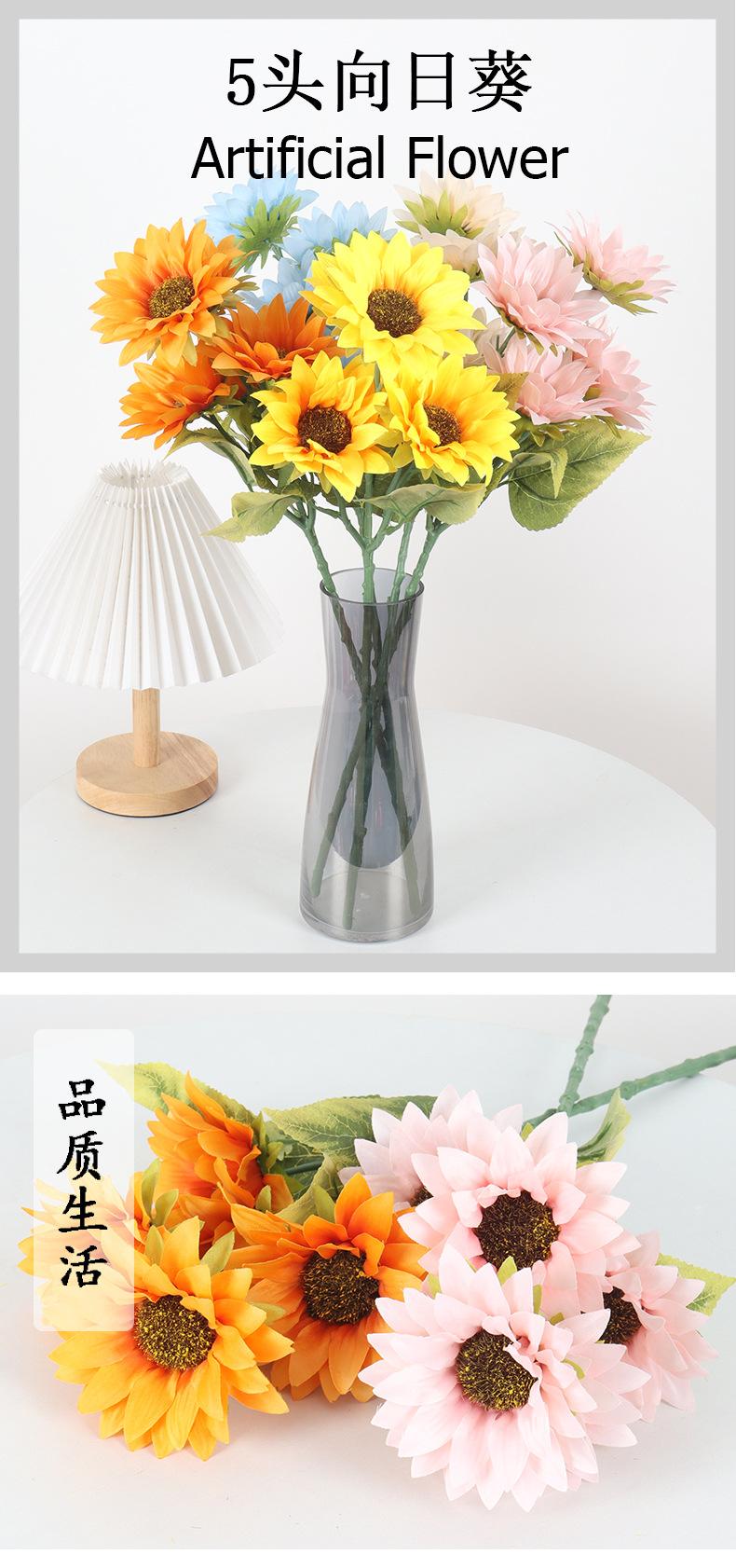 Ramo de flores artificiales de girasol de 5 cabezas para sala de estar, mesa de comedor, escritorio, decoración de flores artificiales, accesorios de fotografía floral al por mayor