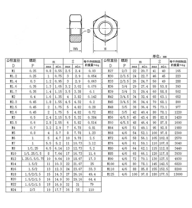 M1.6, M2, M2.5, M3, M4, M5, M6, M8, M10, M12, M14, M16, M18, M20, M22, M24, M27, M30, M33, M36, M39, M42, M45,...