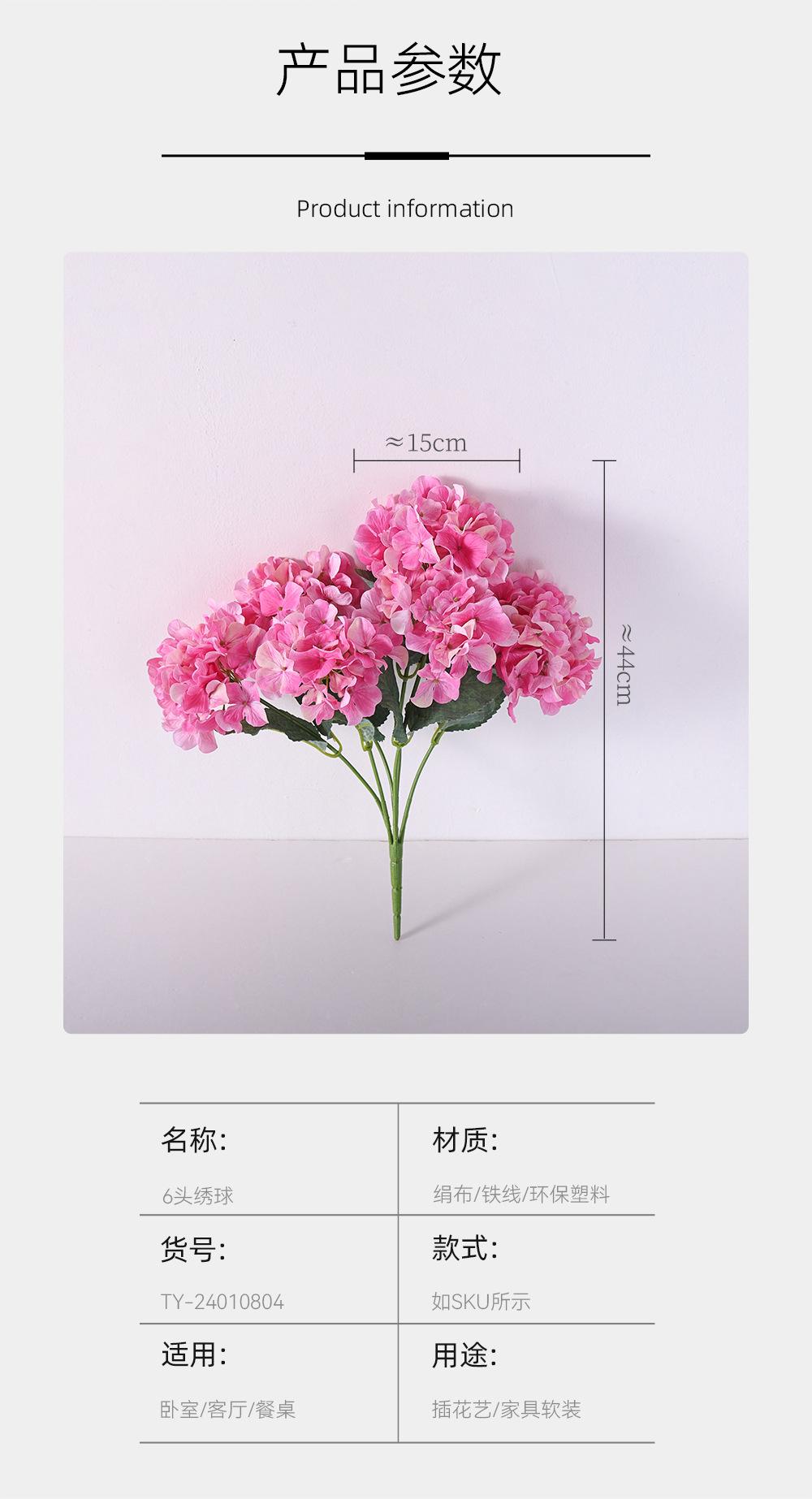 6-head hydrangea-bl09 tianlan, 6-head hydrangea-bl12 blue, 6-head hydrangea-mv05 dark pink, 6-head hydrangea-p...