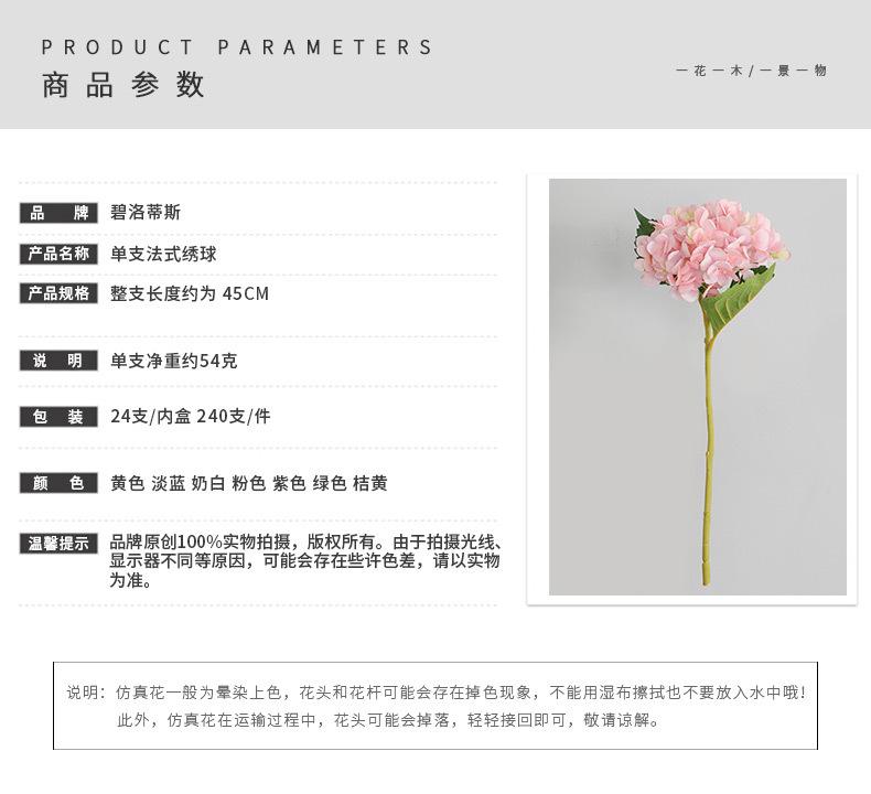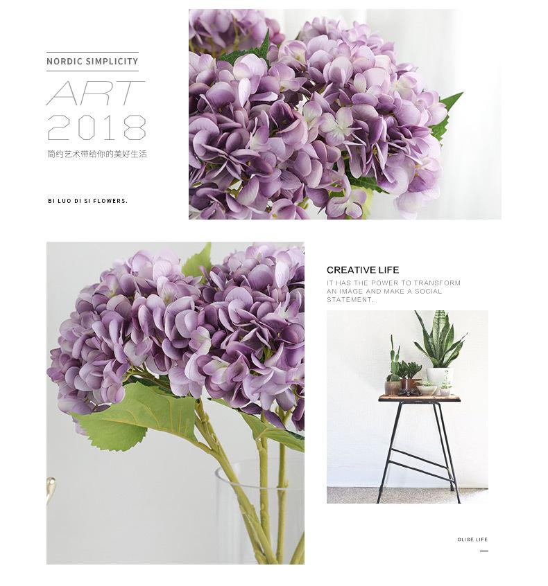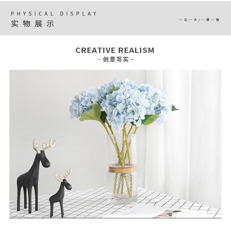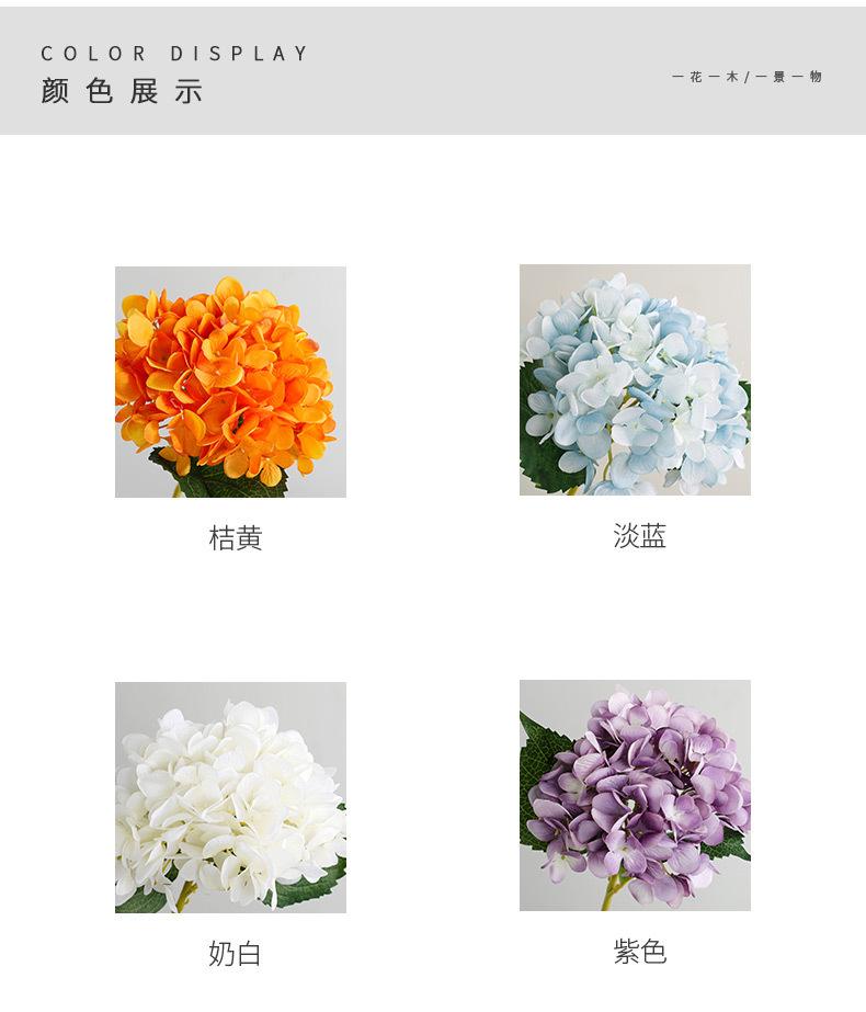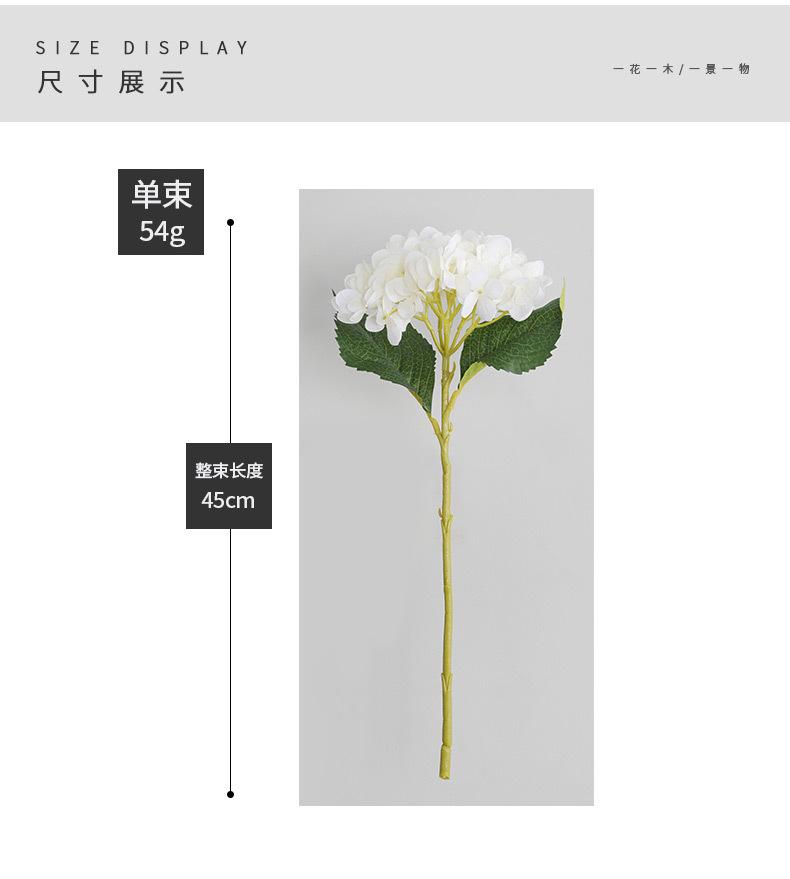 Tamaño: La rama entera mide aproximadamente 45 cm de largo, con 2 hojas de hortensia, el diámetro de la flor es de aproximadamente 20 cm y hay aproximadamente 96 pétalos de diferentes tamaños.