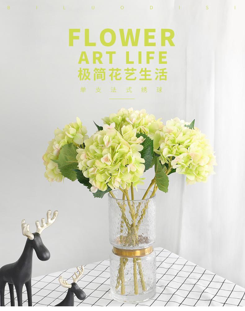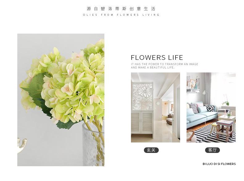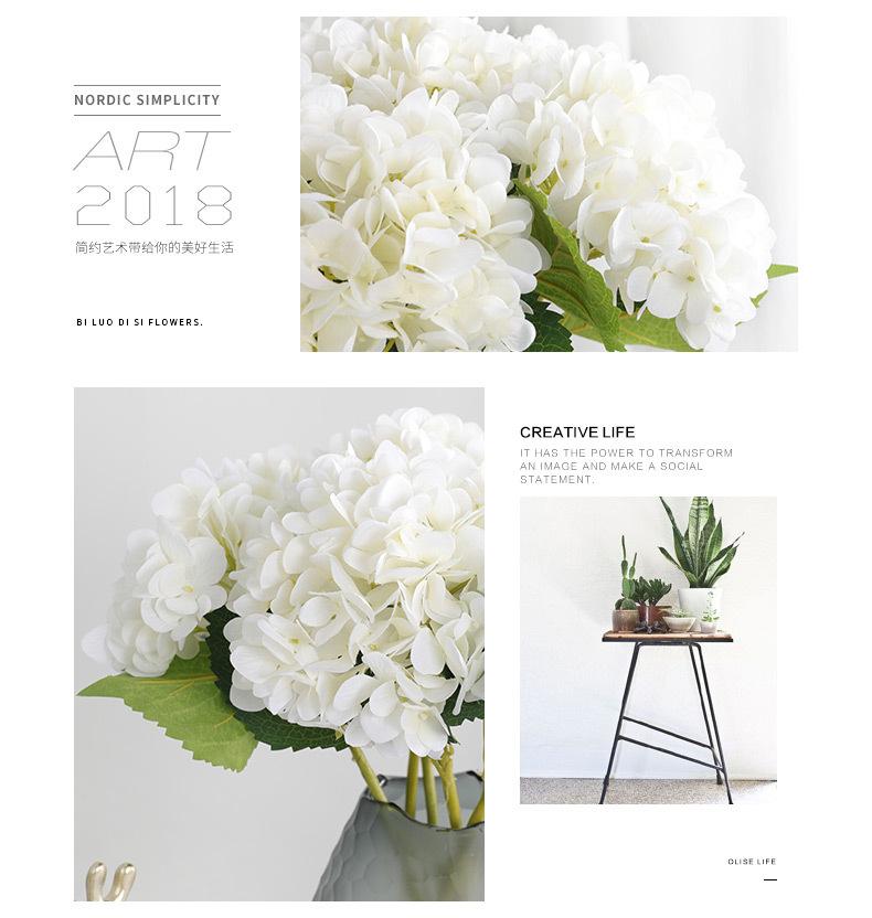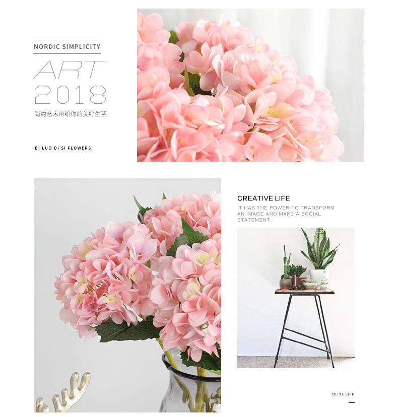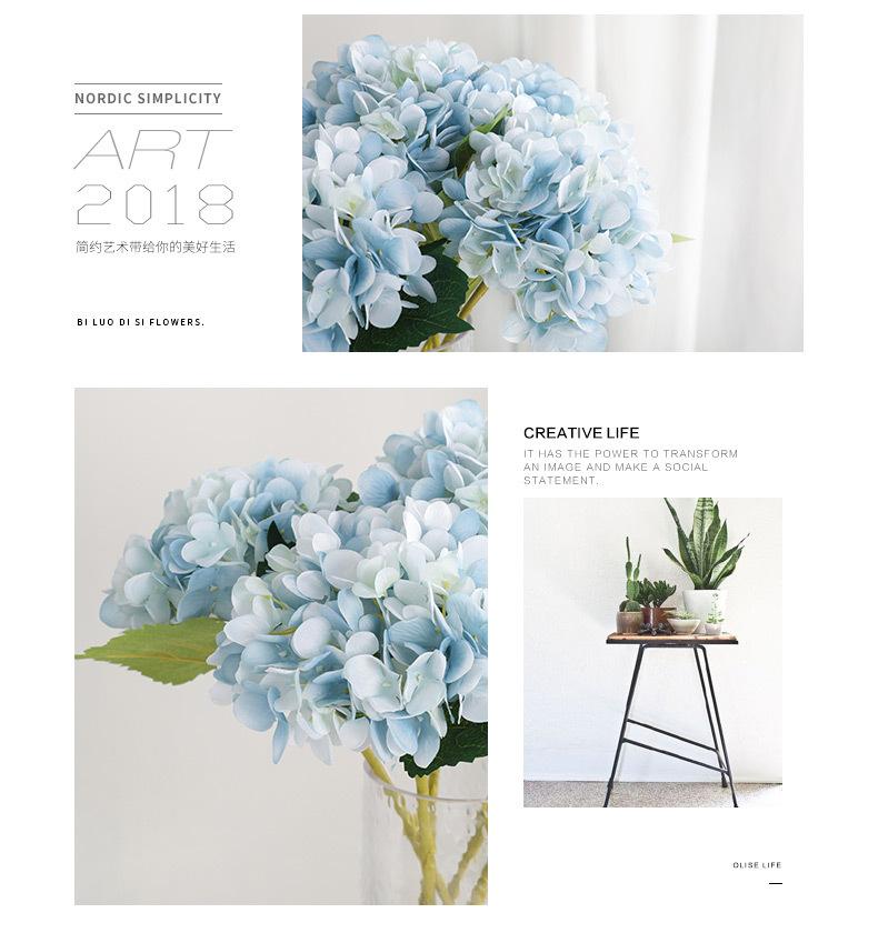 Tamaño: La rama entera mide aproximadamente 45 cm de largo, con 2 hojas de hortensia, el diámetro de la flor es de aproximadamente 20 cm y hay aproximadamente 96 pétalos de diferentes tamaños.