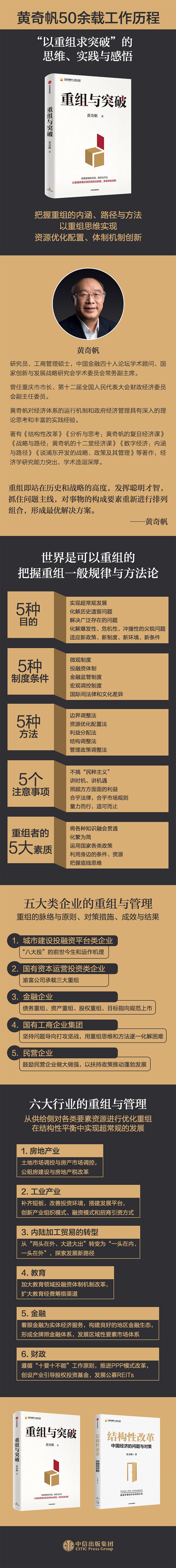 En el curso del trabajo, en el desarrollo de empresas y localidades, siempre encontraremos diversas dificultades, cuellos de botella e incluso crisis. Si podemos utilizar el método de pensamiento de la reestructuración para convertir el peligro en seguridad y salir de las dificultades, es sin duda una gran bendición. En sus más de 50 años de trabajo, Huang Qifan, el ex alcalde de Chongqing, participó y lideró una serie de reestructuraciones, a partir de las cuales comprendió profundamente el verdadero significado y la diversión de la reestructuración. Este libro recopila el pensamiento y la práctica de "reestructuración para avances" del alcalde Huang Qifan cuando se enfrentó a algunas dificultades durante su trabajo en Chongqing, con el fin de compartir sus ideas sobre la reestructuración con los lectores. Este libro está dividido en dos partes. La primera parte se centra en la reestructuración y gestión de empresas, incluyendo cinco tipos principales de empresas: empresas plataforma de inversión y financiación para la construcción urbana, empresas de operación e inversión de capital, empresas financieras, grupos empresariales industriales y comerciales estatales y empresas privadas. El contenido de la reestructuración de cada tipo de empresa involucra la gravedad de las dificultades de la empresa en ese momento, la urgencia y necesidad de la reestructuración, así como el contexto y los principios, las contramedidas, las medidas, la eficacia y los resultados del plan de reestructuración para resolver los problemas de la empresa. La segunda parte se centra en la reestructuración y gestión de industrias, incluyendo la reestructuración y gestión de seis industrias principales: bienes raíces urbanos, industria industrial, transformación del comercio de procesamiento interior, educación, finanzas y asuntos fiscales. La reestructuración de cada industria involucra el estado actual de la industria, etc.