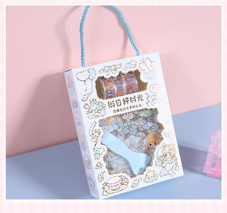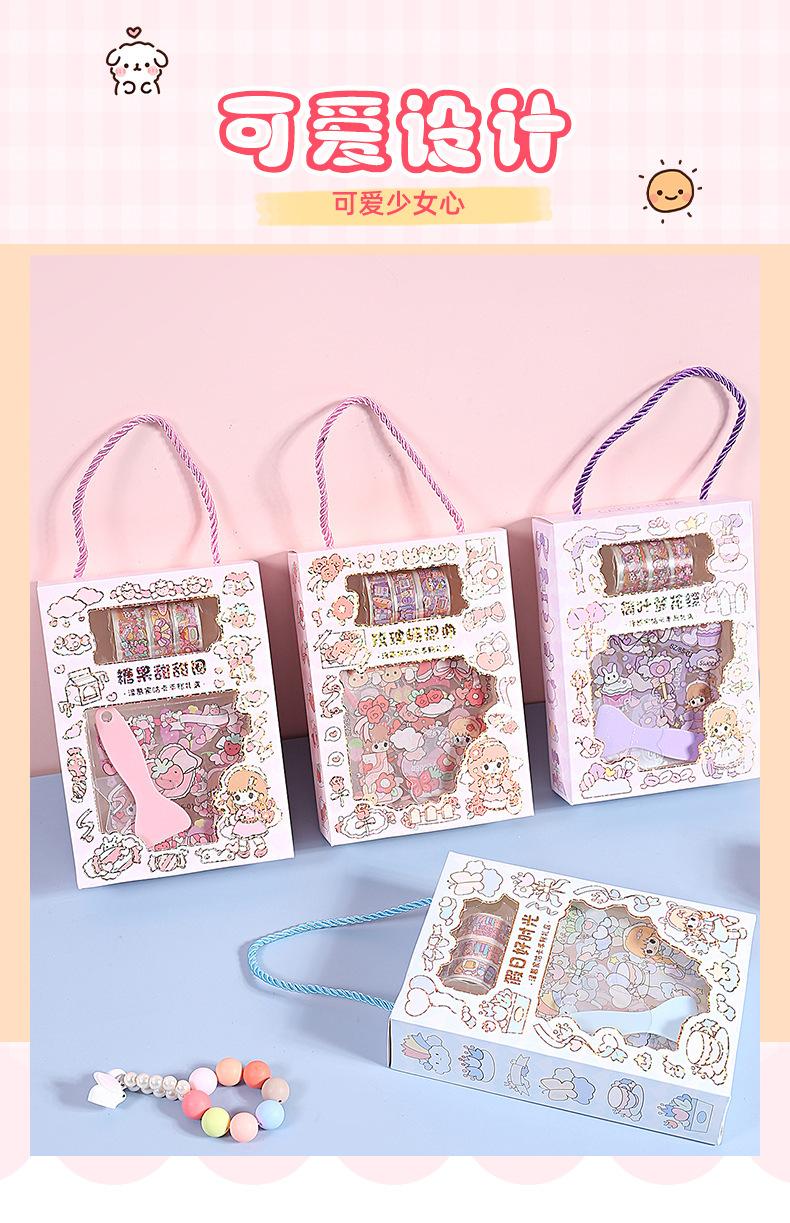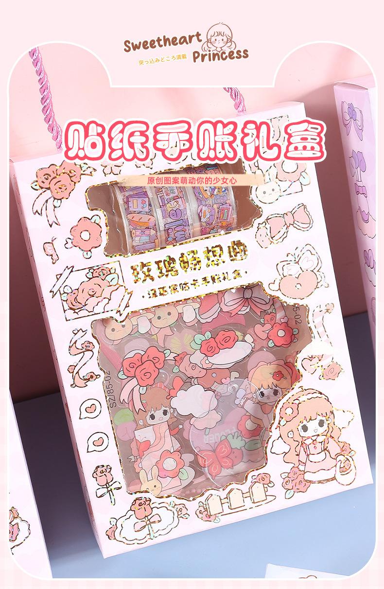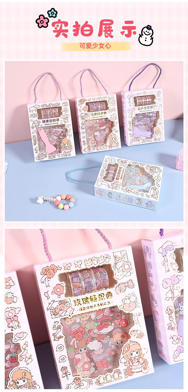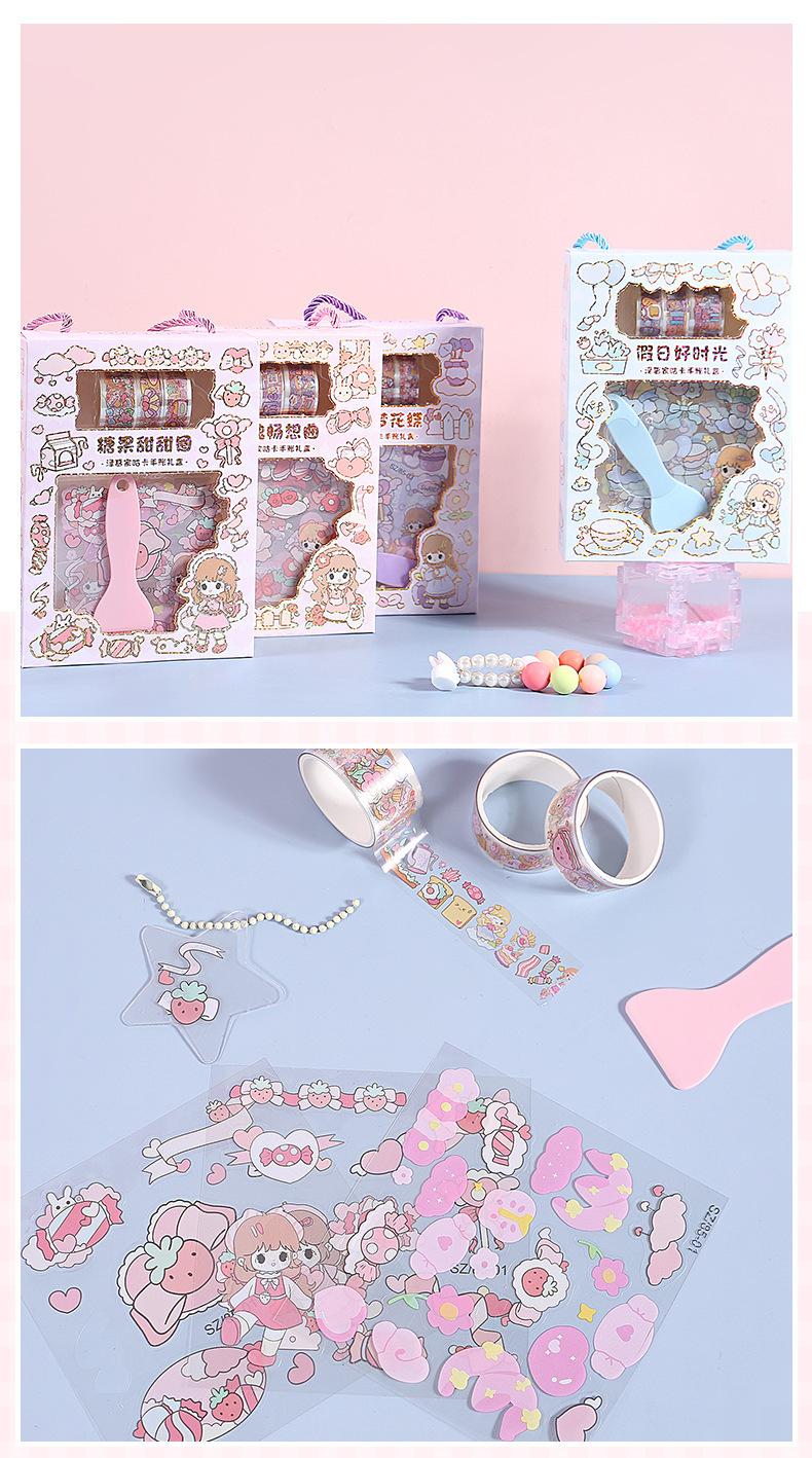 Pegatinas para mascotas, caja de regalo dorada, cinta de diario transparente, cinta creativa de papel para estudiantes con forma de corazón para niñas, pegatinas de dibujos animados