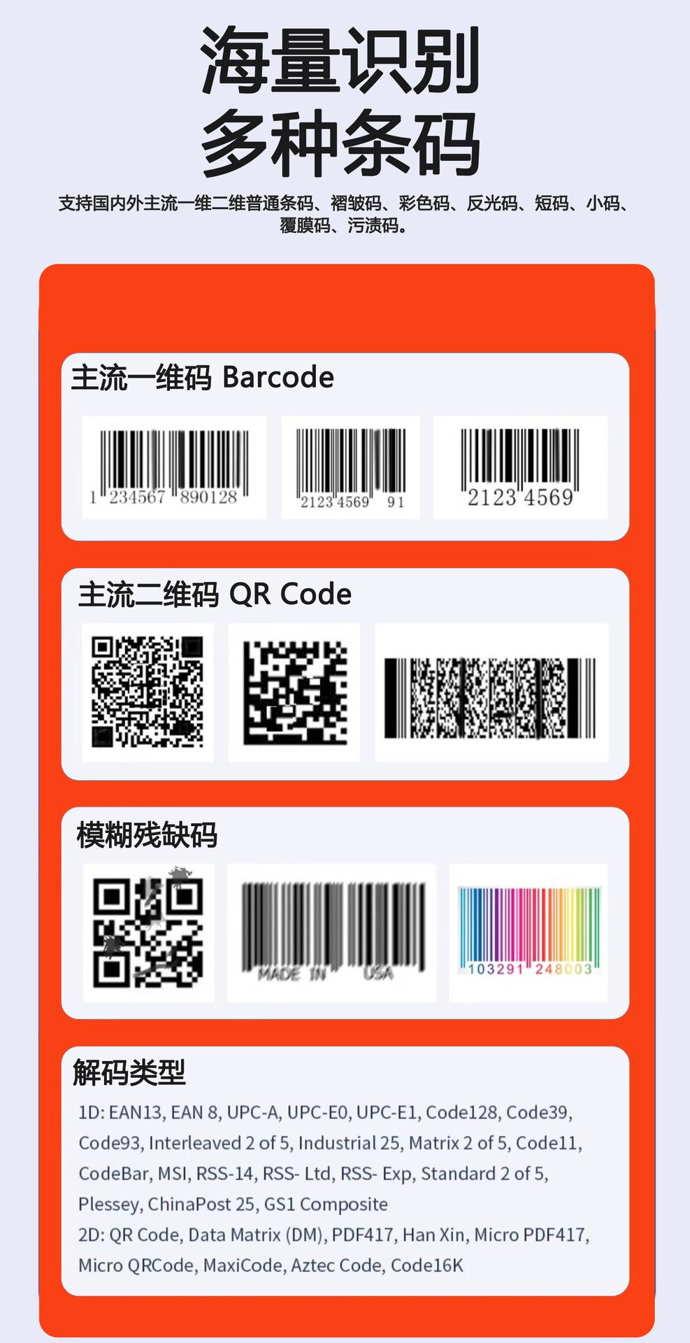 Fabricantes de escáneres con cable bidimensionales unidimensionales, pistola de escaneo de código de barras inalámbrica Shang Chao Express Logistics dentro y fuera del almacén, pistola de escaneo