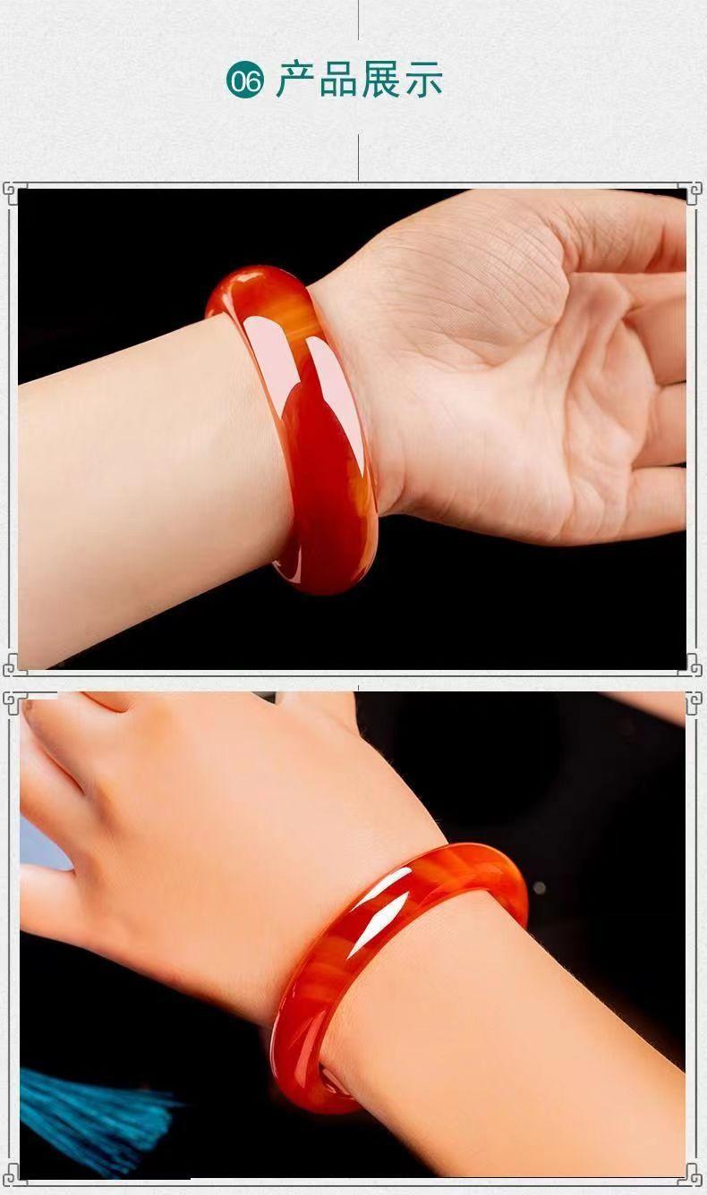 [Descripción del producto] Este producto es una pulsera de ágata calcedonia, proceso de color horneado, retención de color permanente