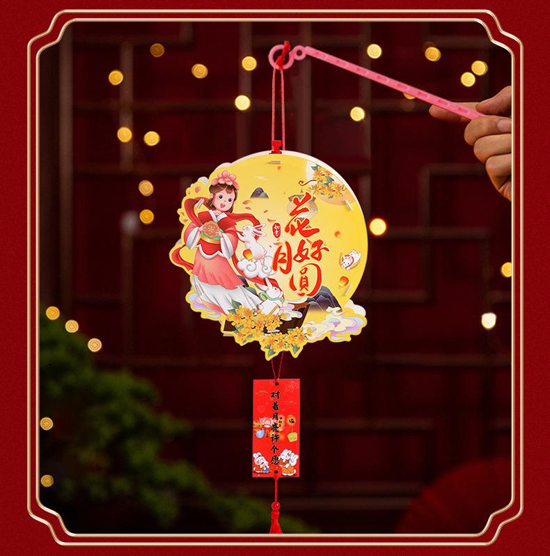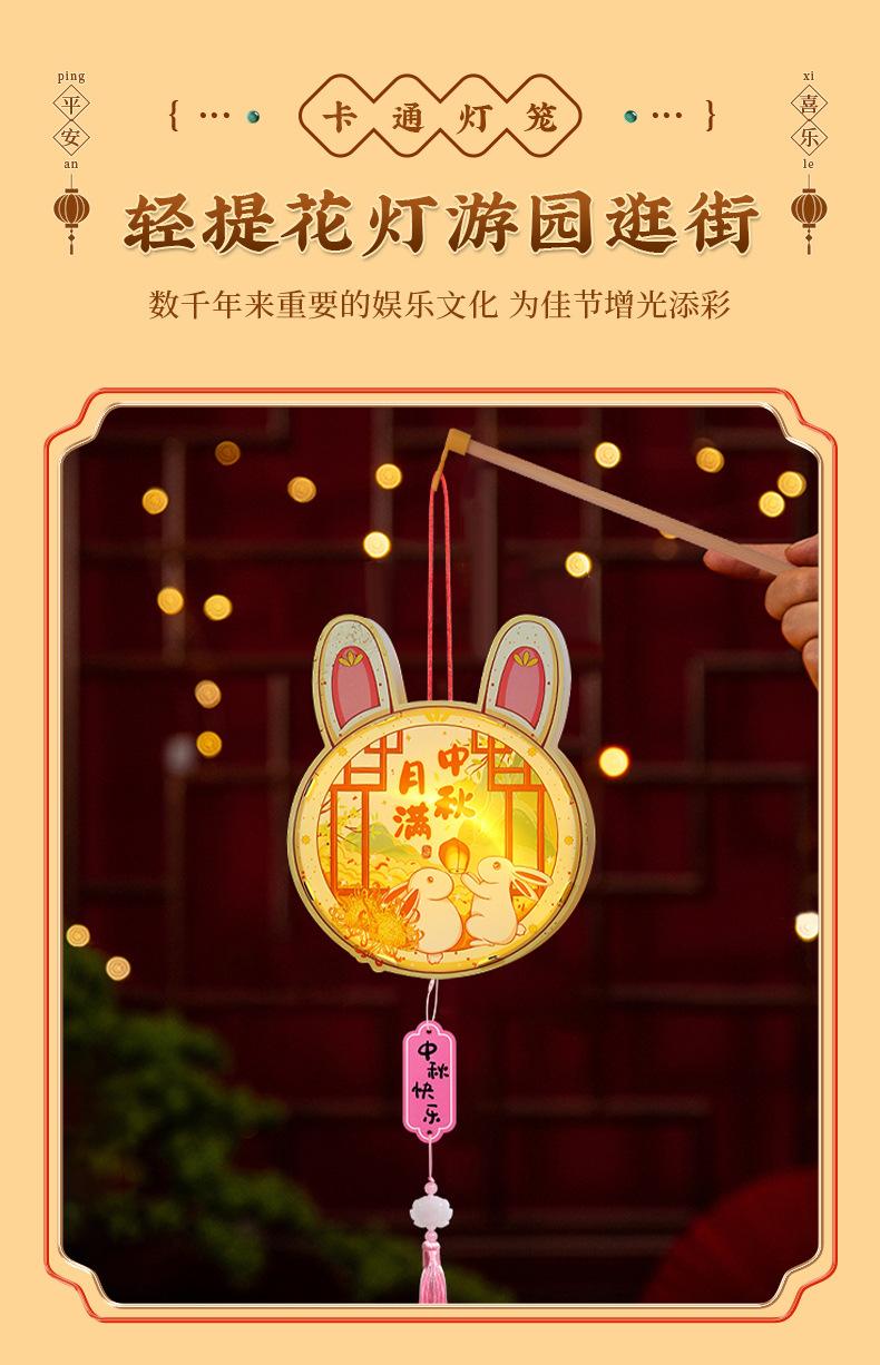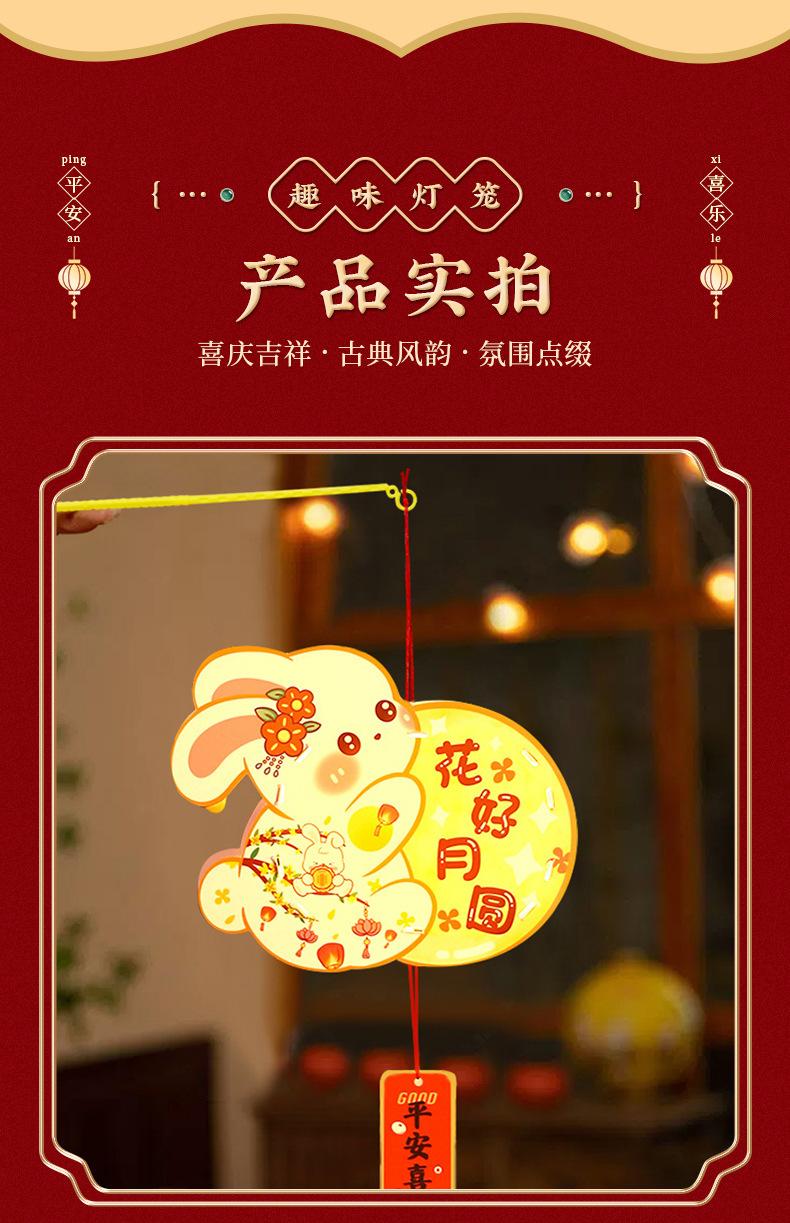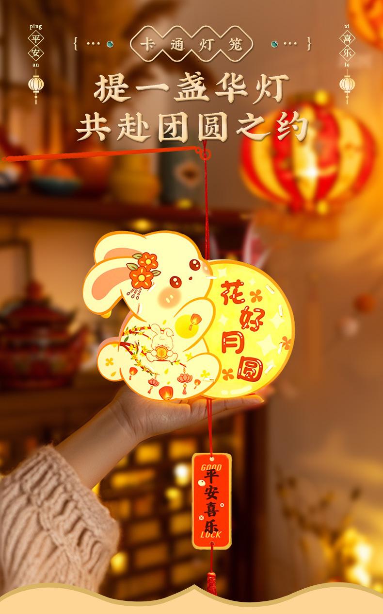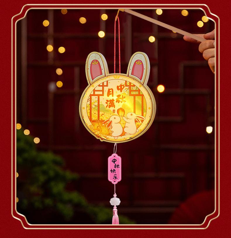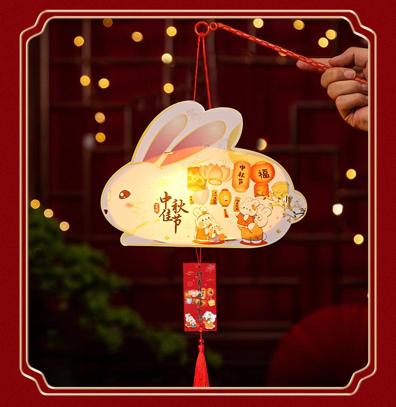 Faroles del Festival del Medio Otoño Faroles de Bambú DIY Hechos a Mano para Niños Faroles Mini de Estilo Antiguo Faroles de Conejo Luminosos de Bolso