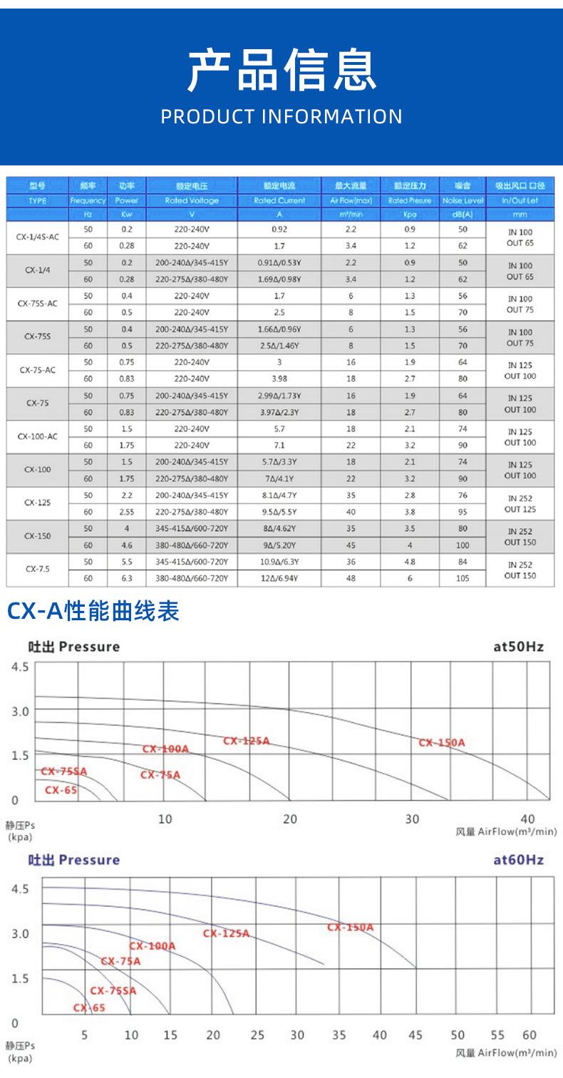 Ventilador de Mediana Presión de Gran Volumen de Aire 0.75Kw para Maquinaria de Impresión Cx-75 Soplador de Mediana Presión Tipo Pasante 380V220